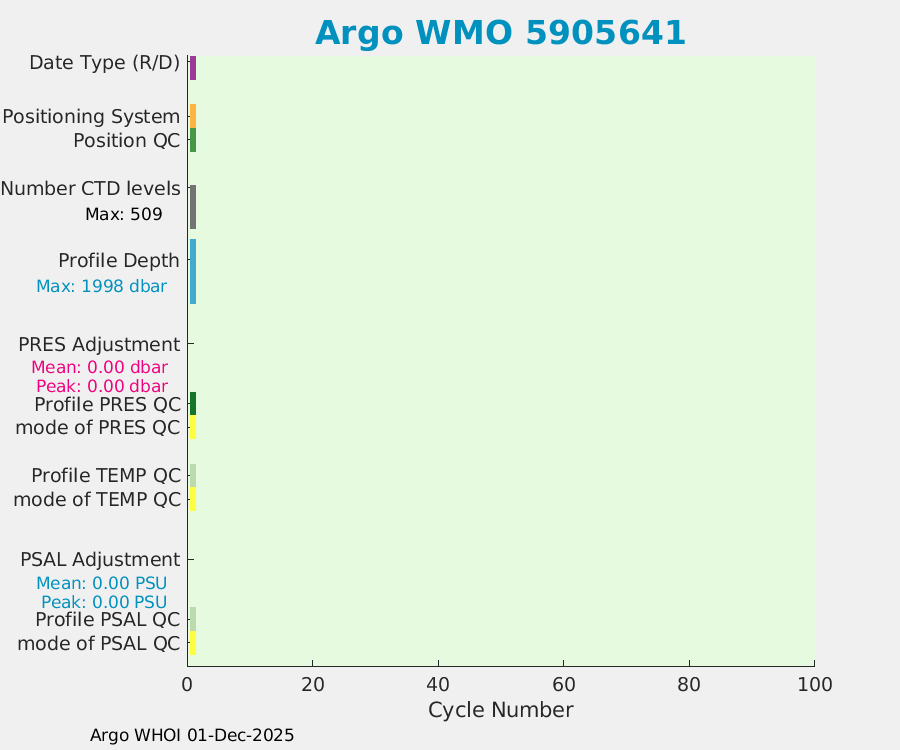 | WMO: #5905641 DAC: aoml PI: STEPHEN RISER APEX: #7269 SBE41CP: #8795 DRUCK_2900PSIA: #10300557 Altimeter Comparison (IFREMER) EuroArgo Link | n/a | n/a | ![]() |