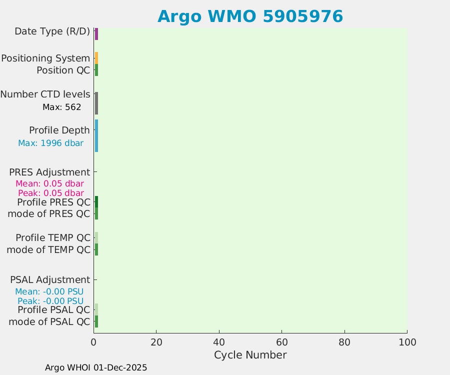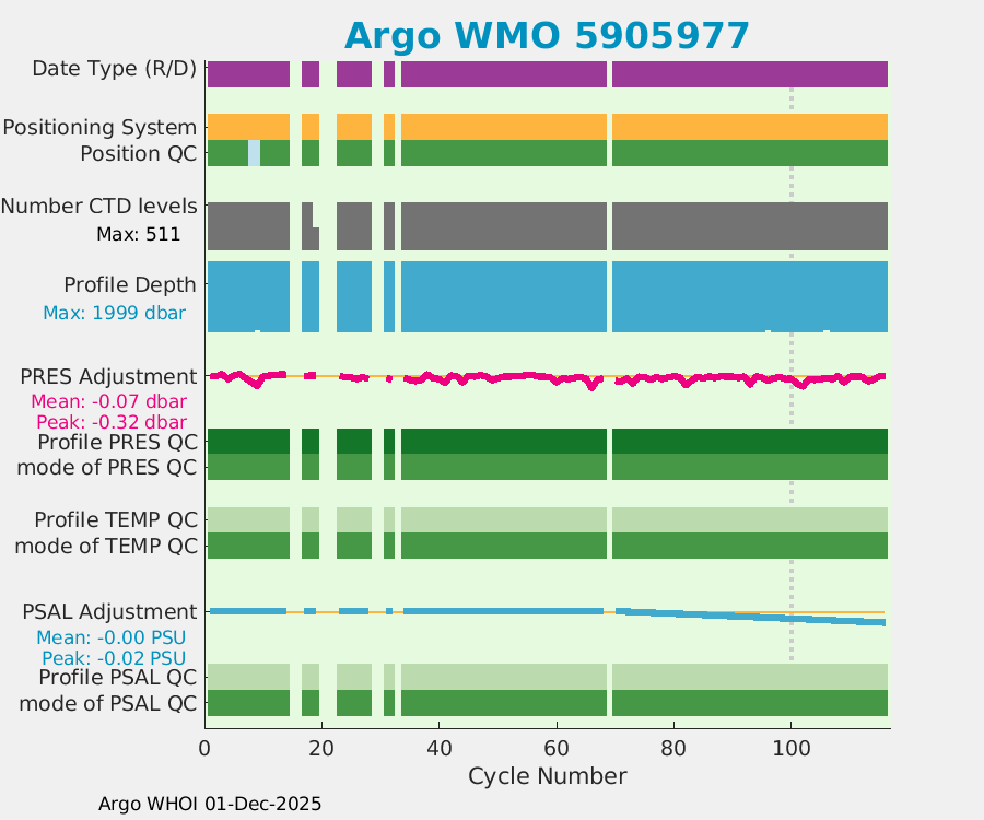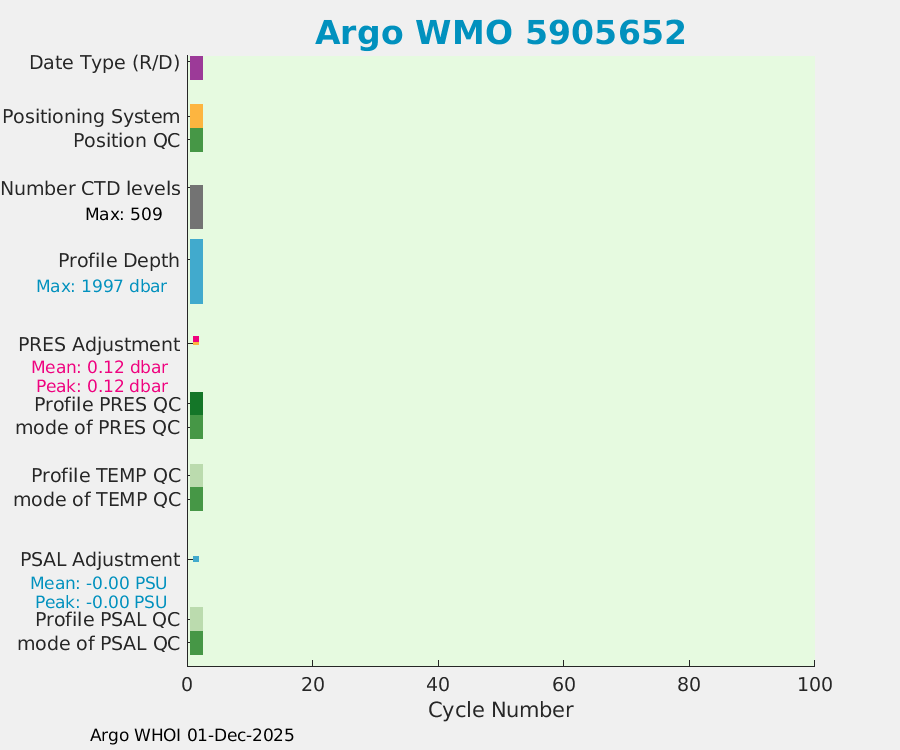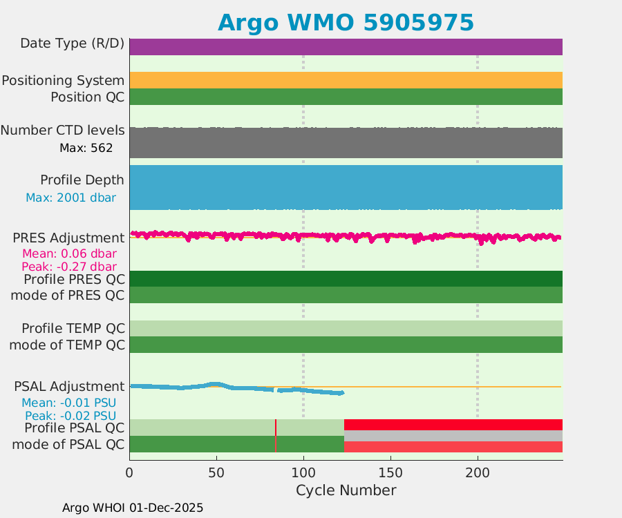 | WMO: #5905976 DAC: aoml PI: STEPHEN RISER APEX: #7961 SBE41CP: #9745 DRUCK_2900PSIA: #10648924 AANDERAA_OPTODE_4330: #2911 Altimeter Comparison (IFREMER) EuroArgo Link | n/a | n/a | ![]() |