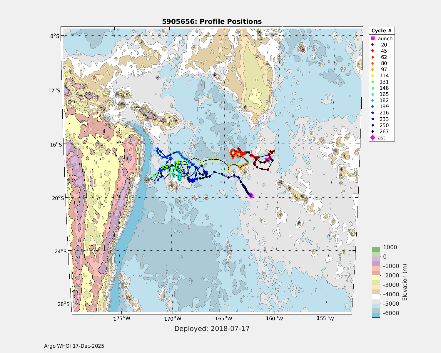 | WMO: #5905373 DAC: aoml PI: STEPHEN RISER, KENNETH JOHNSON APEX: #7968 SBE41CP: #9018 DRUCK_2900PSIA: #10428654 AANDERAA_OPTODE_4330: #2687 ISUS: #0772 DURA: #0772 ECO_FLBB_AP2: #4414 Altimeter Comparison (IFREMER) EuroArgo Link | ![]() |