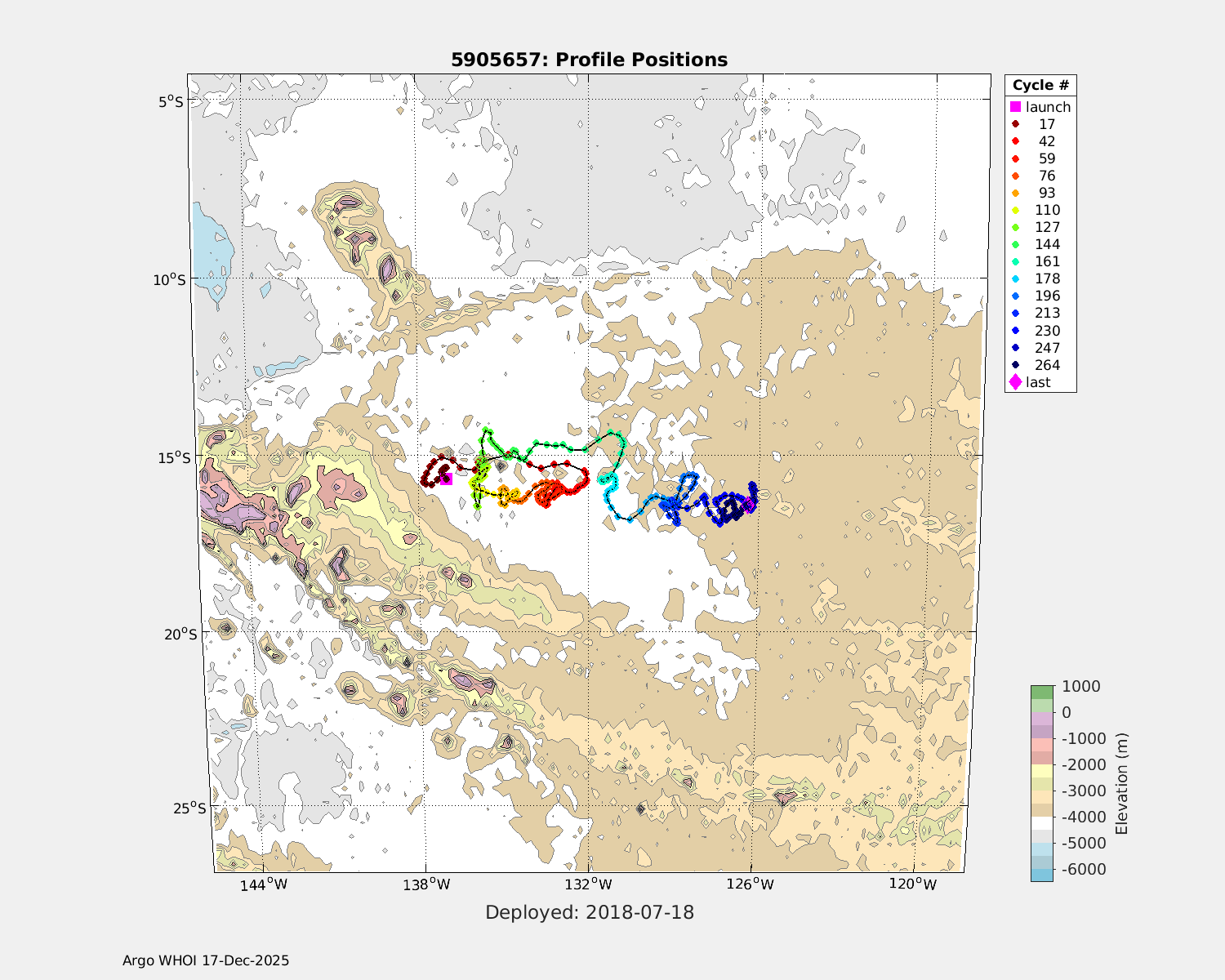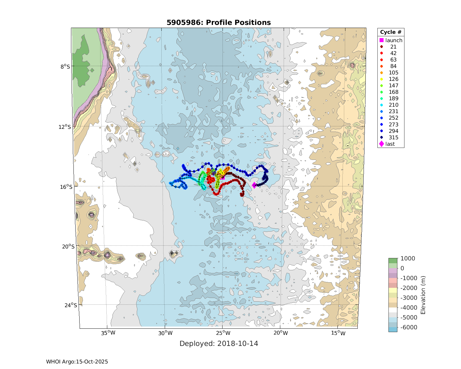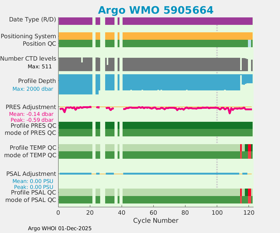 | WMO: #5905637 DAC: aoml PI: STEPHEN RISER, KENNETH JOHNSON APEX: #7975 SBE41CP: #9026 DRUCK_2900PSIA: #10392252 AANDERAA_OPTODE_4330: #2711 ISUS: #0799 DURA: #0799 ECO_FLBB_AP2: #4421 Altimeter Comparison (IFREMER) EuroArgo Link | ![]() |