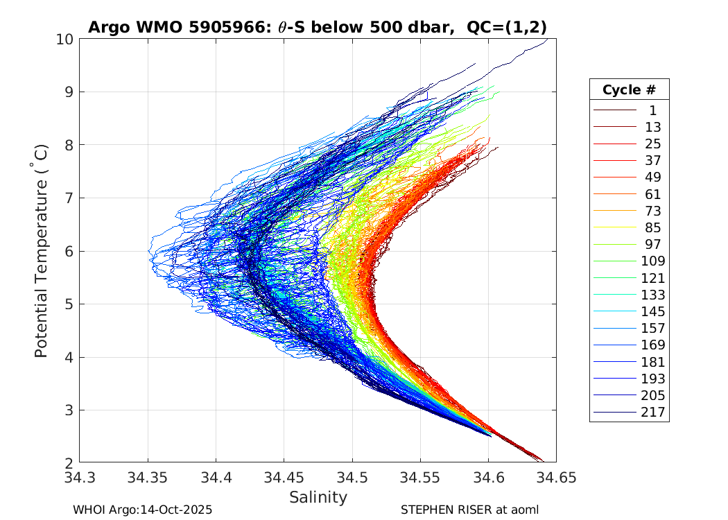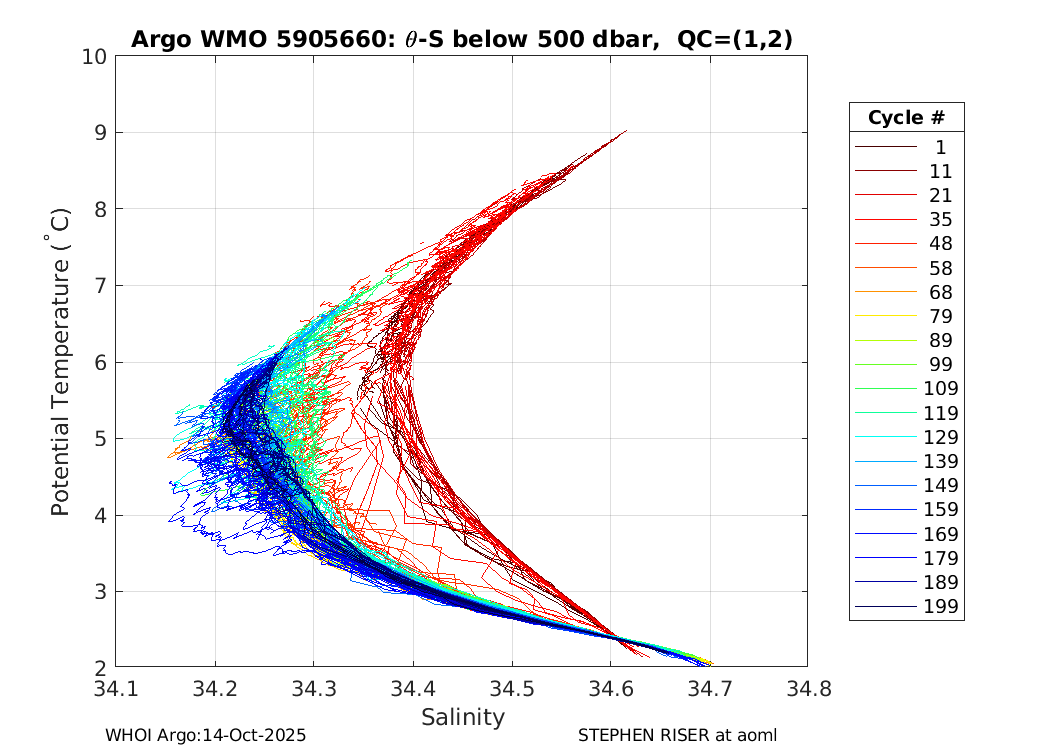 | WMO: #5905664 DAC: aoml PI: STEPHEN RISER APEX: #8273 SBE41CP: #9474 DRUCK_2900PSIA: #10445358 Altimeter Comparison (IFREMER) EuroArgo Link | ![]() |