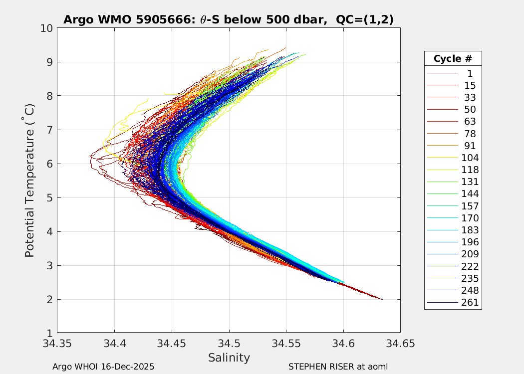 | WMO: #5905665 DAC: aoml PI: STEPHEN RISER APEX: #8274 SBE41CP: #9475 DRUCK_2900PSIA: #10445357 Altimeter Comparison (IFREMER) EuroArgo Link | ![]() |