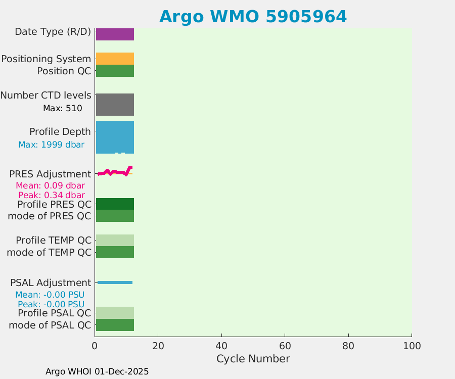 | WMO: #5905964 DAC: aoml PI: STEPHEN RISER APEX: #7690 SBE41CP: #8477 DRUCK_2900PSIA: #4940357 Altimeter Comparison (IFREMER) EuroArgo Link | ![]() |