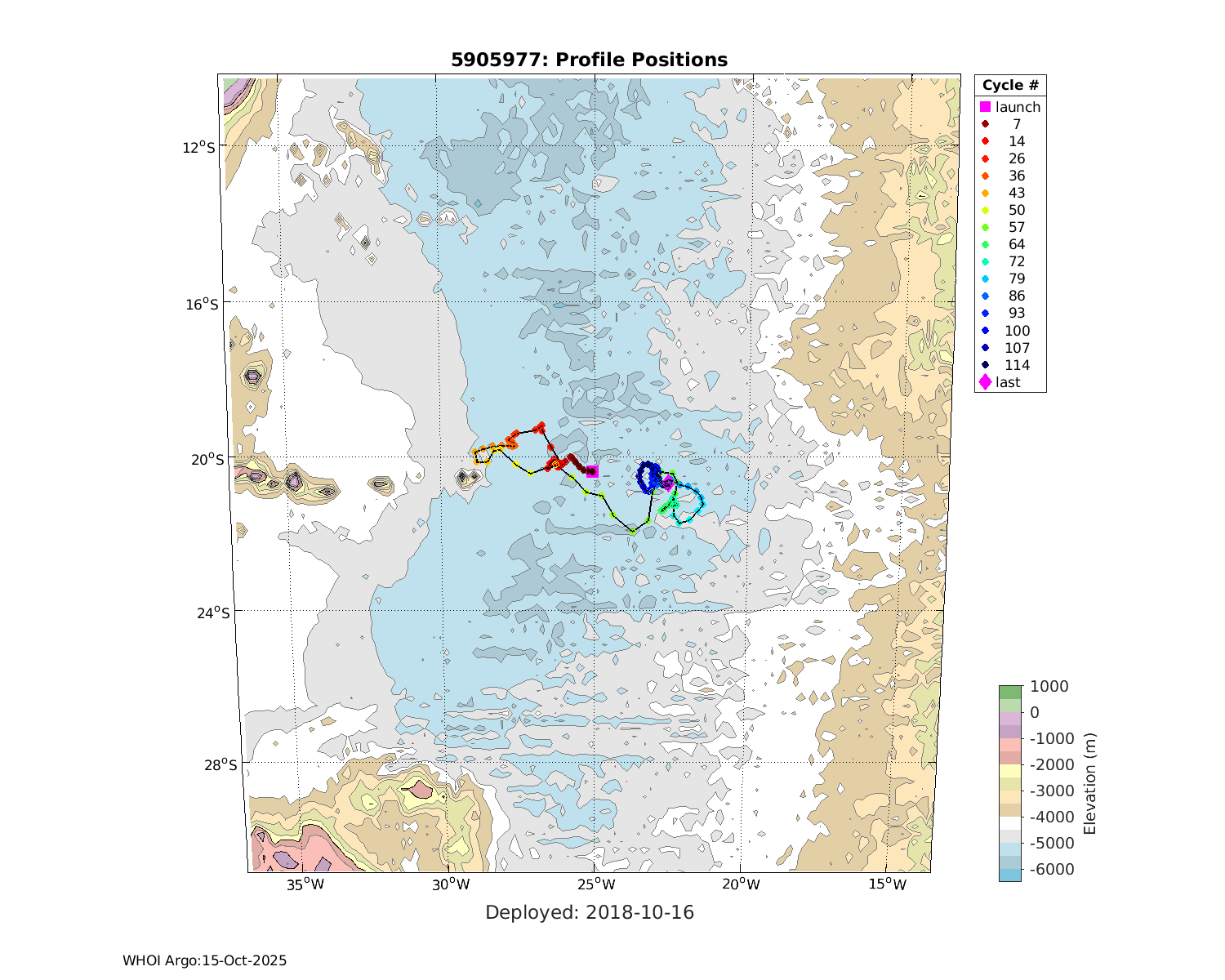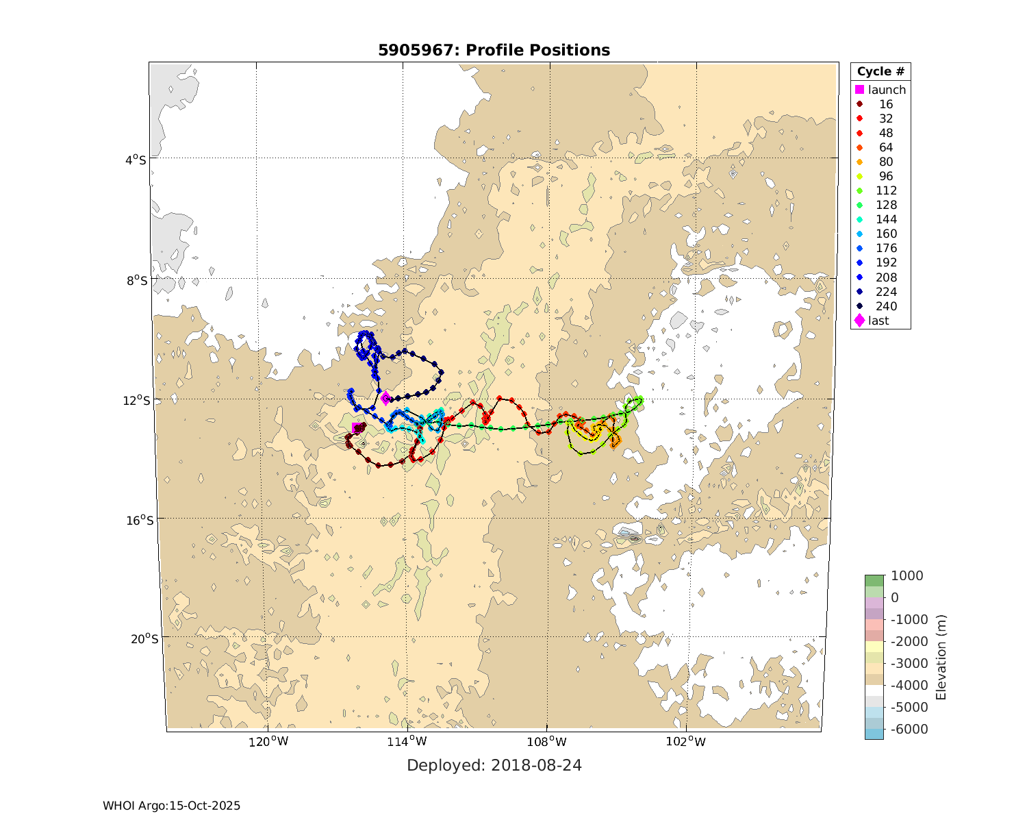| WMO: #5906001 DAC: aoml PI: STEPHEN RISER, KENNETH JOHNSON APEX: #8359 SBE41CP: #10450 DRUCK_2900PSIA: #10820445 AANDERAA_OPTODE_4330: #2861 ISUS: #0810 DURA: #0810 ECO_FLBB_AP2: #4685 Altimeter Comparison (IFREMER) EuroArgo Link | ![]() |
