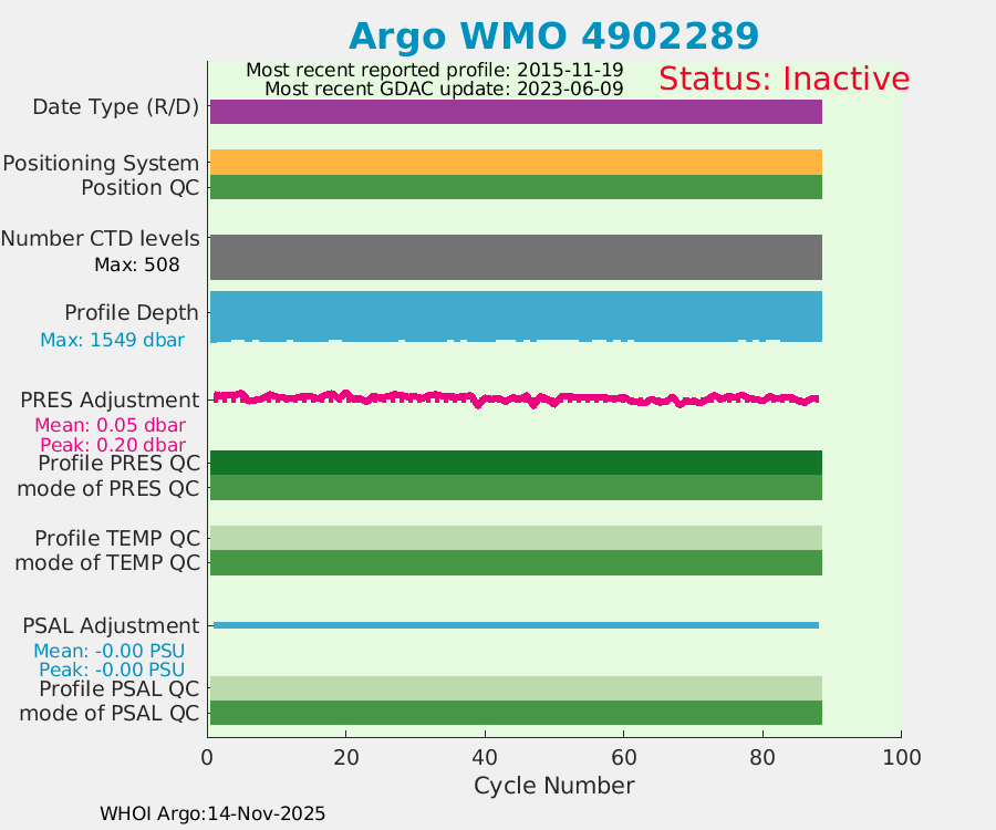 | WMO: #1901633 DAC: aoml PI: BRECK OWENS SOLO: #1149 SBE41CP: #3115 DRUCK_2900PSIA: #3173069 Altimeter Comparison (IFREMER) EuroArgo Link | ![]() |