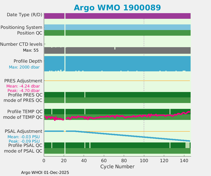 | WMO: #1900089 DAC: bodc PI: Jon Turton APEX: #466 AMETEK_3000PSIA: #2657717494 SBE41: #518 Altimeter Comparison (IFREMER) EuroArgo Link | ![]() |