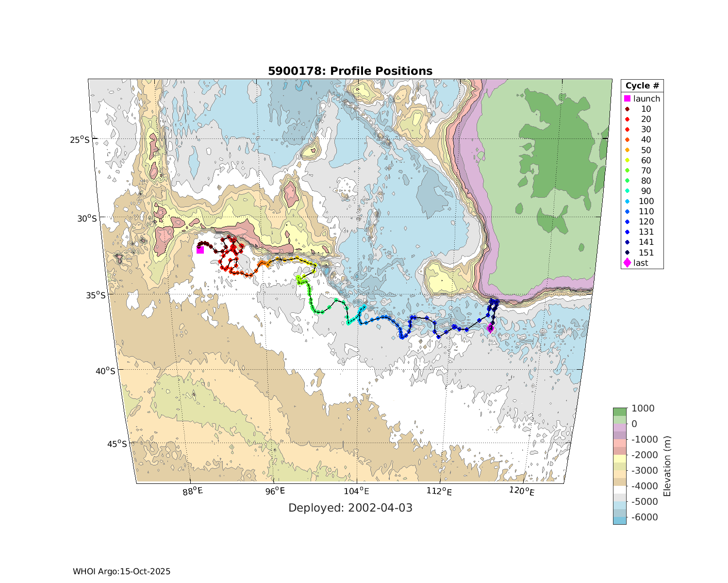 | WMO: #5900184 DAC: bodc PI: Jon Turton APEX: #484 DRUCK_2900PSIA: #5170 SBE41: #546 Altimeter Comparison (IFREMER) EuroArgo Link | ![]() |