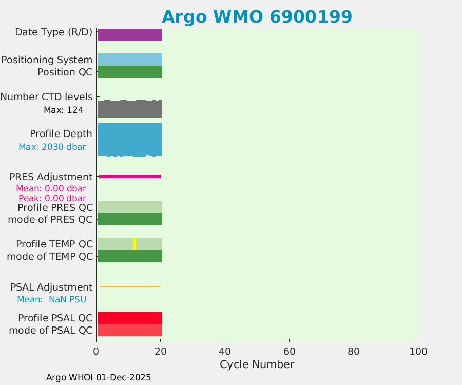 | WMO: #6900199 DAC: bodc PI: Jon Turton PROVOR: # FSI: #1427 Altimeter Comparison (IFREMER) EuroArgo Link | ![]() |
