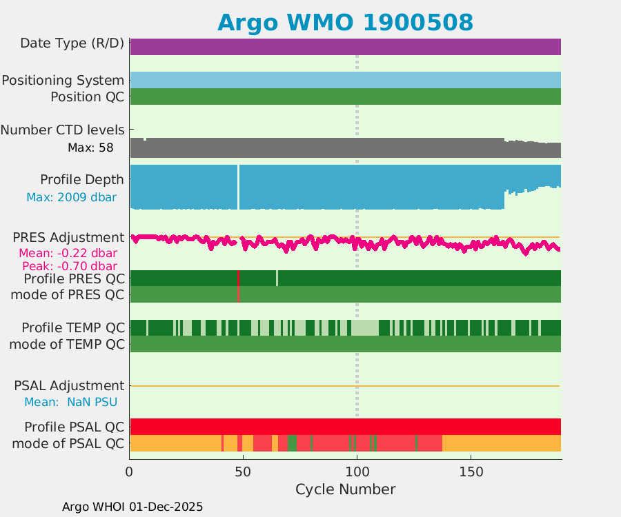 | WMO: #1900585 DAC: bodc PI: Jon Turton APEX: #1507 DRUCK_2900PSIA: #5900 SBE41: #1554 Altimeter Comparison (IFREMER) EuroArgo Link | ![]() |