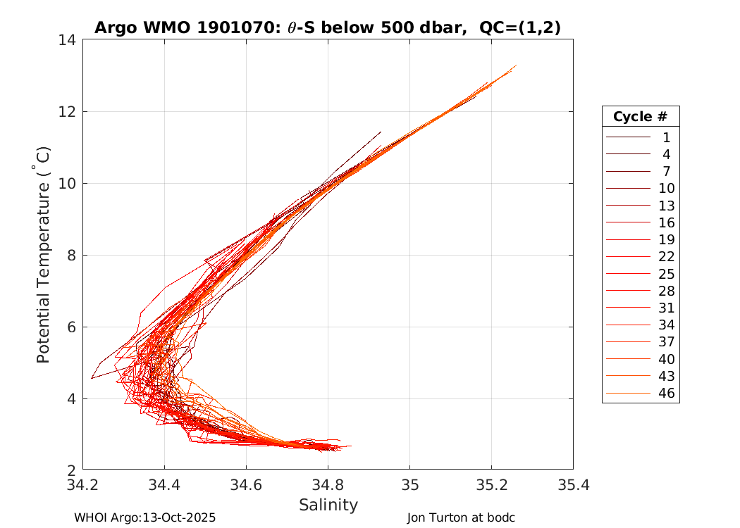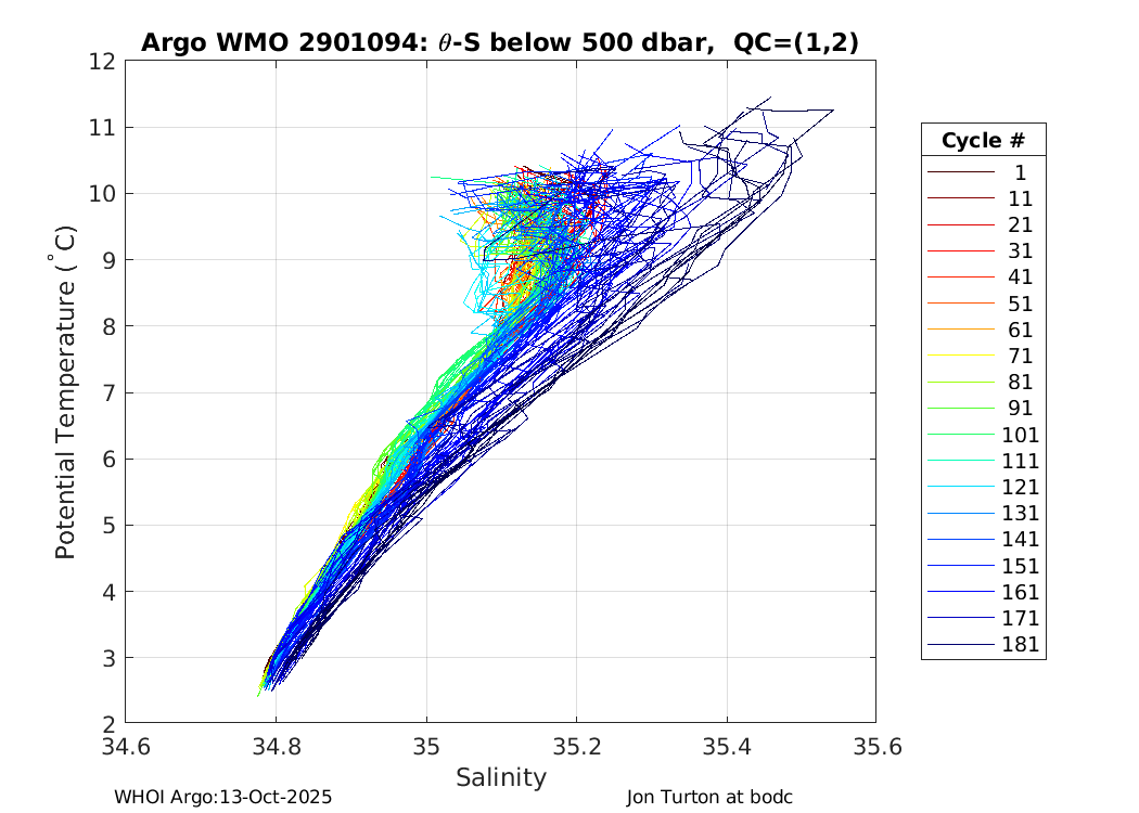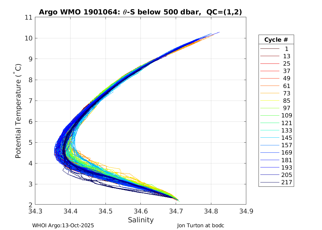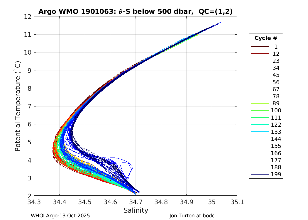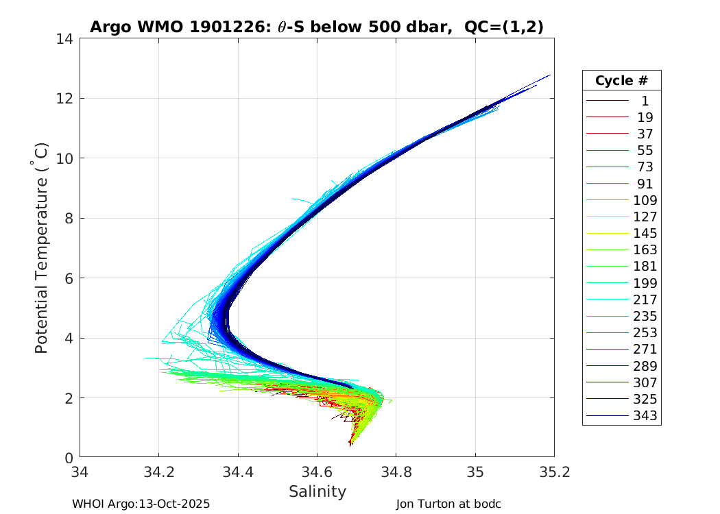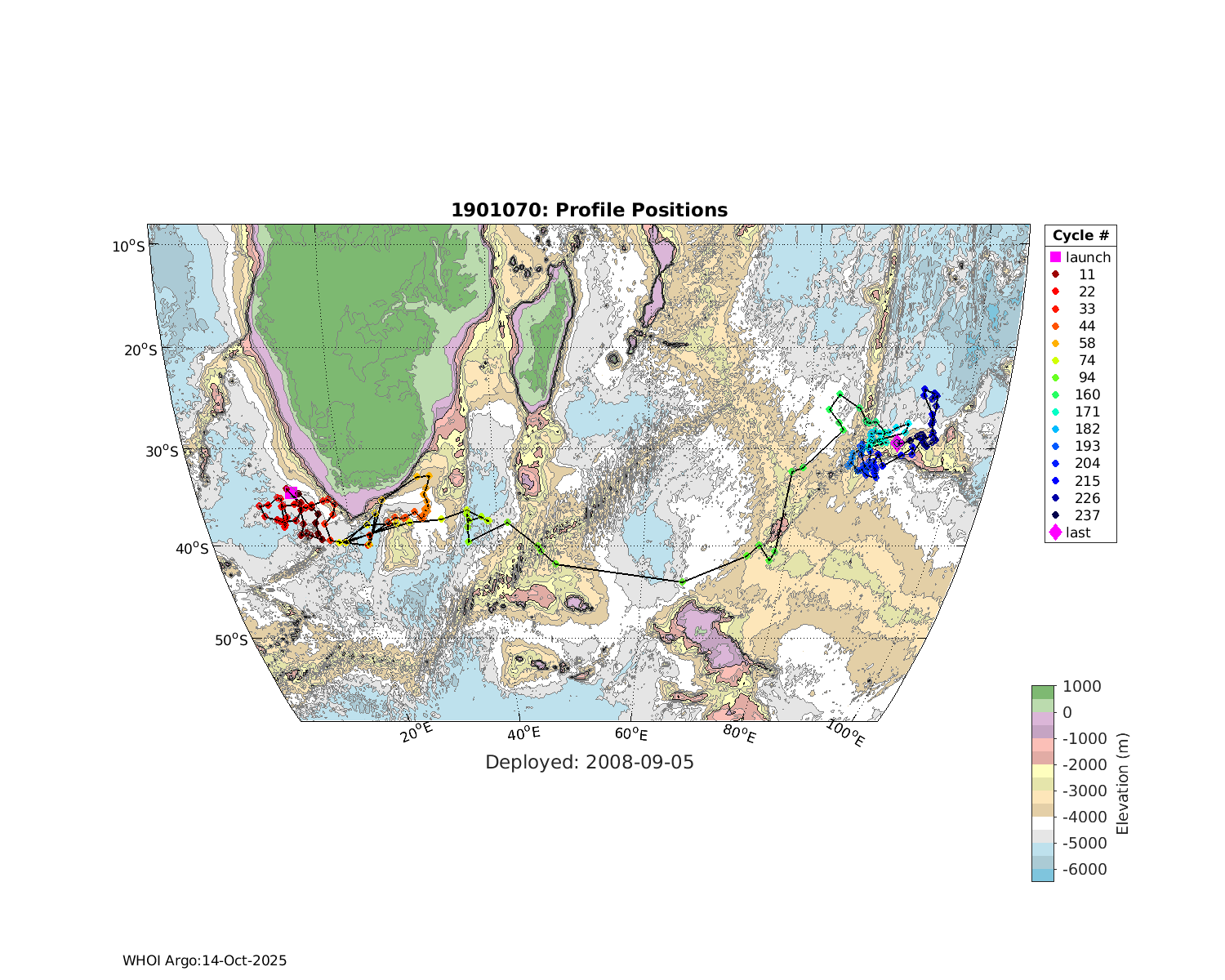 | WMO: #1901070 DAC: bodc PI: Jon Turton APEX: #3851 DRUCK_2900PSIA: #3212537 SBE41: #3766 Altimeter Comparison (IFREMER) EuroArgo Link | ![]() |