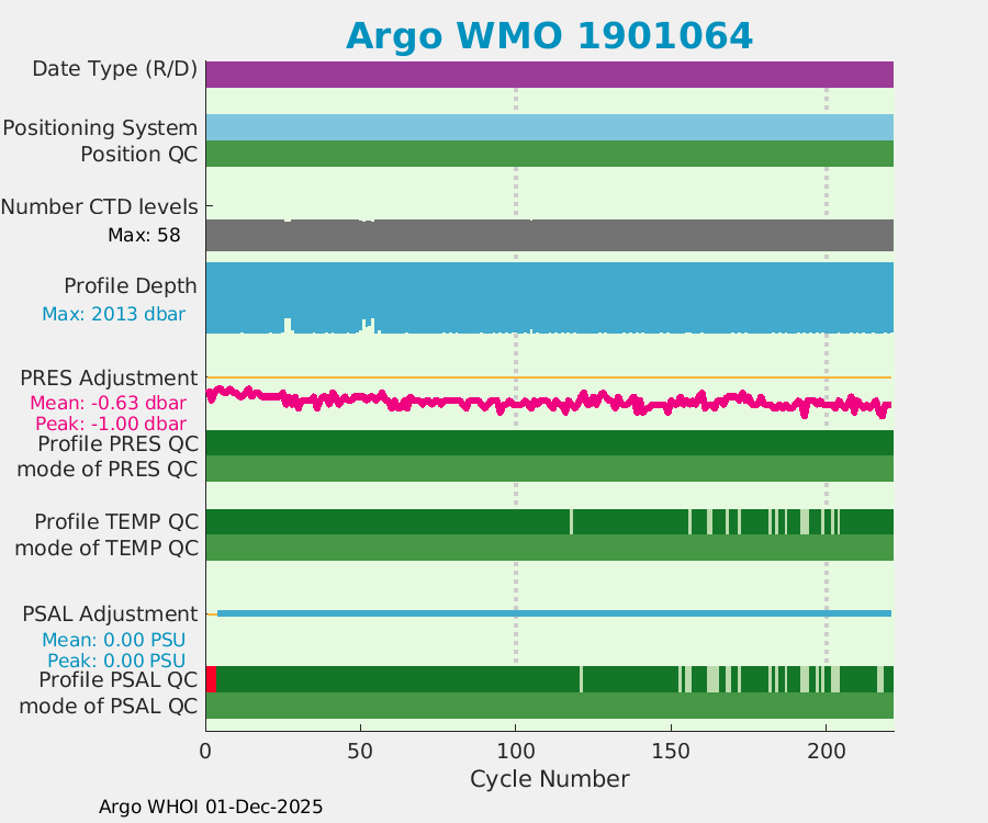 | WMO: #1901060 DAC: bodc PI: Jon Turton APEX: #2711 DRUCK_2900PSIA: #9562 SBE41: #2700 Altimeter Comparison (IFREMER) EuroArgo Link | ![]() |