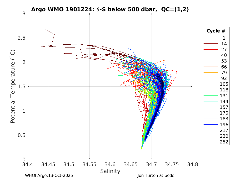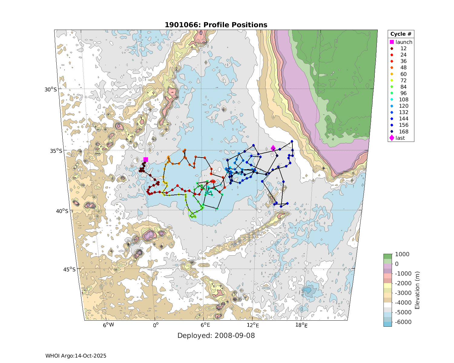 | WMO: #1901069 DAC: bodc PI: Jon Turton APEX: #3860 DRUCK_2900PSIA: #2488292 SBE41: #3819 Altimeter Comparison (IFREMER) EuroArgo Link | ![]() |