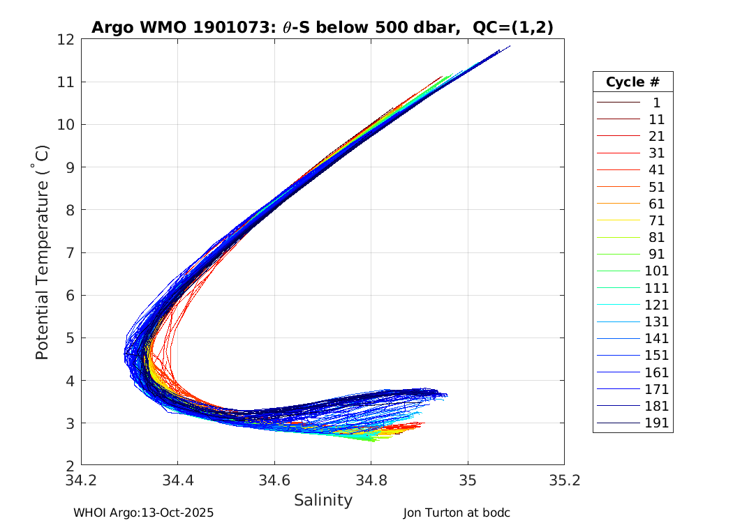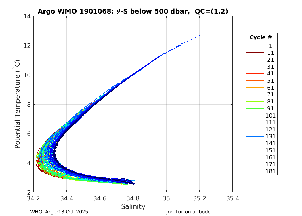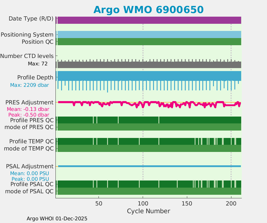 | WMO: #1901073 DAC: bodc PI: Jon Turton APEX: #3910 DRUCK_2900PSIA: #2632621 SBE41: #4096 Altimeter Comparison (IFREMER) EuroArgo Link | ![]() |