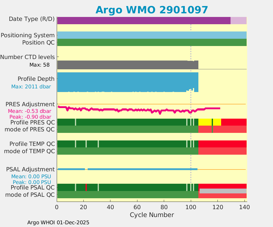 | WMO: #2901097 DAC: bodc PI: Jon Turton APEX: #2701 KISTLER_2900PSIA: #2075156 SBE41: #2710 Altimeter Comparison (IFREMER) EuroArgo Link | ![]() |