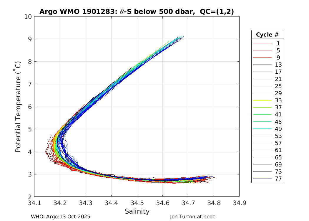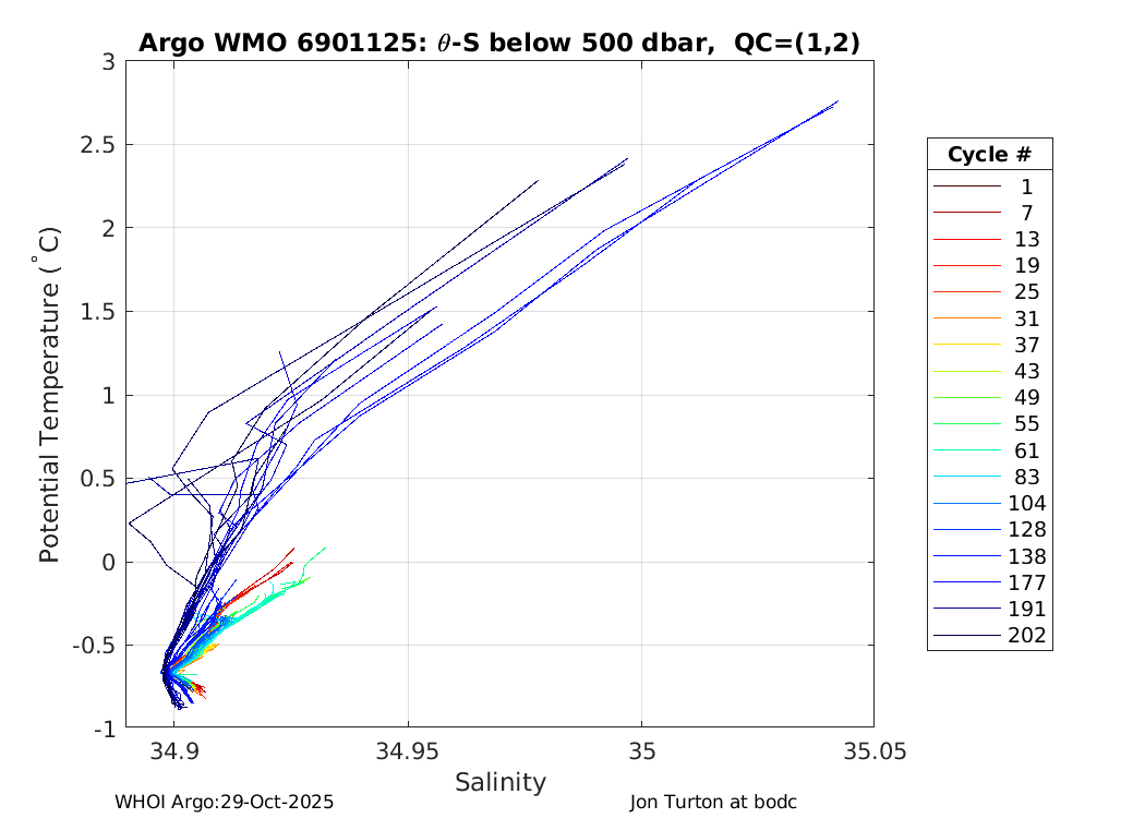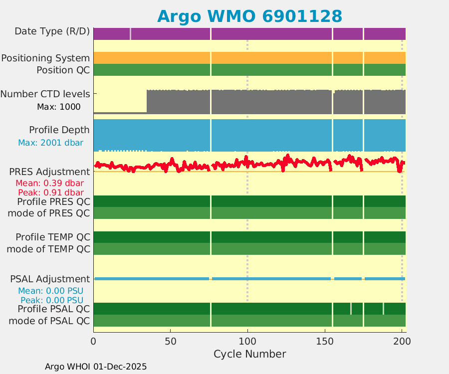 | WMO: #1901291 DAC: bodc PI: Jon Turton APEX: #6256 DRUCK_2900PSIA: #3392280 SBE41: #5751 Altimeter Comparison (IFREMER) EuroArgo Link | ![]() |