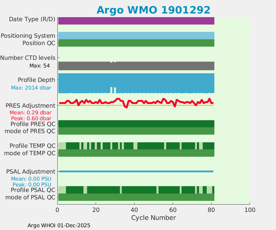 | WMO: #1901292 DAC: bodc PI: Jon Turton APEX: #6257 DRUCK_2900PSIA: #3883872 SBE41: #5748 Altimeter Comparison (IFREMER) EuroArgo Link | ![]() |