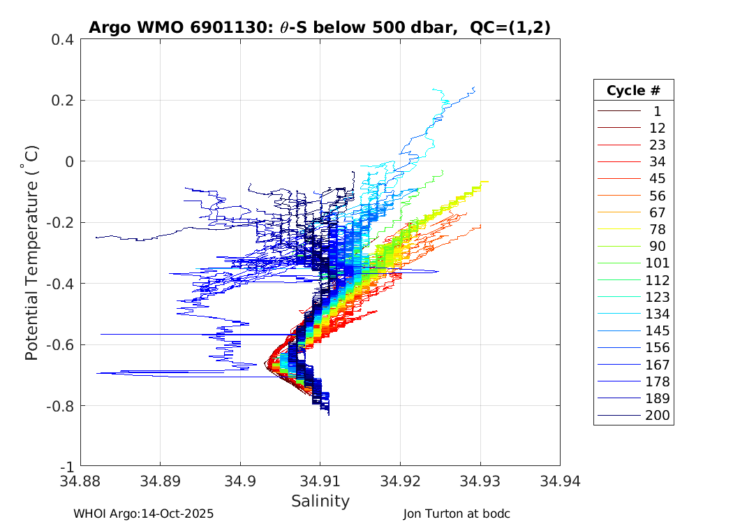 | WMO: #6901145 DAC: bodc PI: Jon Turton APEX: #5013 DRUCK_2900PSIA: #3537421 SBE41: #4890 Altimeter Comparison (IFREMER) EuroArgo Link | ![]() |
