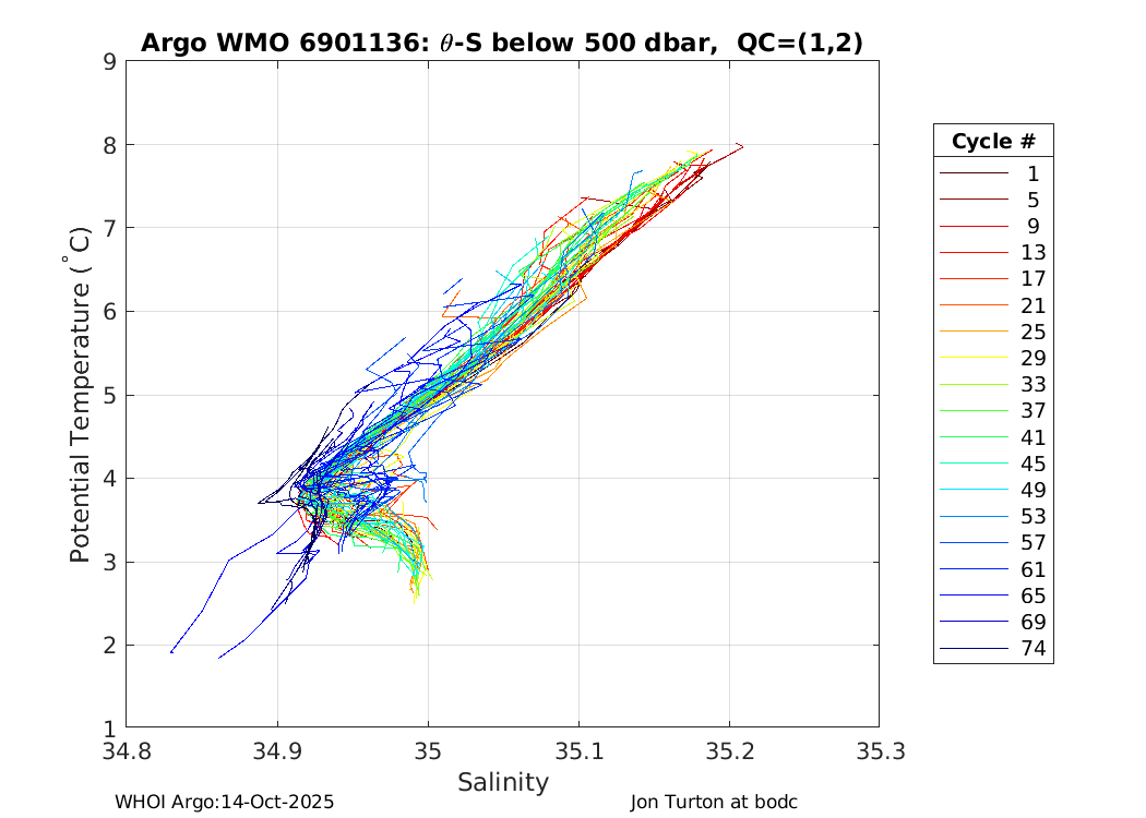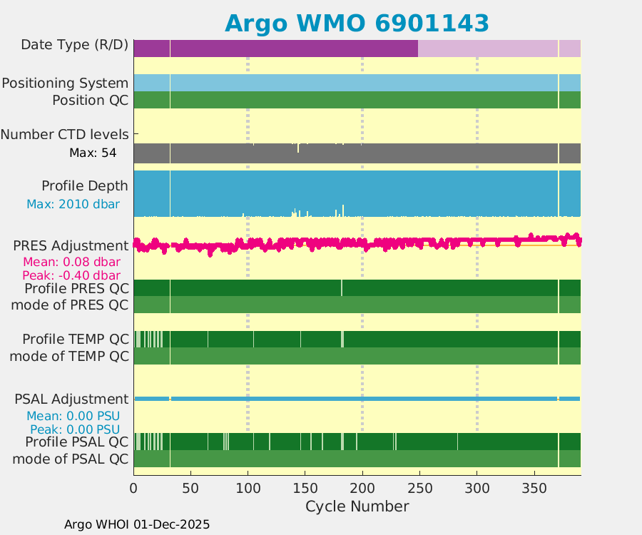 | WMO: #6901136 DAC: bodc PI: Jon Turton APEX: #5543 DRUCK_2900PSIA: #3192826 SBE41: #5276 Altimeter Comparison (IFREMER) EuroArgo Link | ![]() |