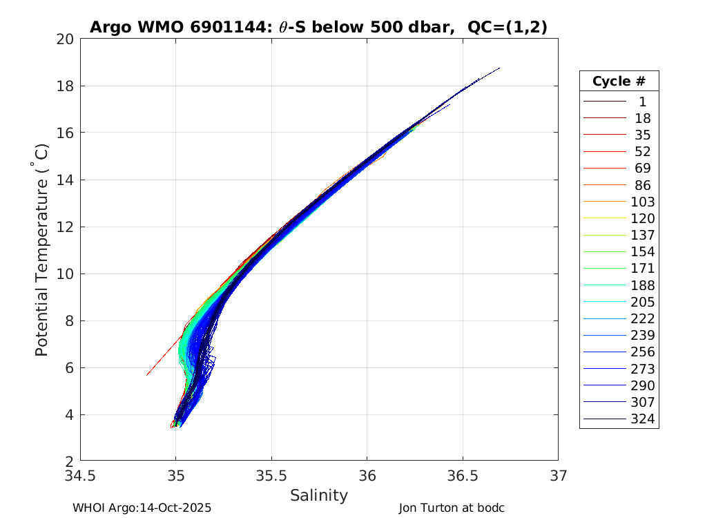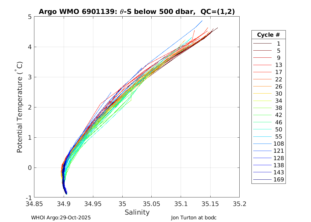 | WMO: #6901144 DAC: bodc PI: Jon Turton APEX: #5012 DRUCK_2900PSIA: #2438924 SBE41: #4888 Altimeter Comparison (IFREMER) EuroArgo Link | ![]() |