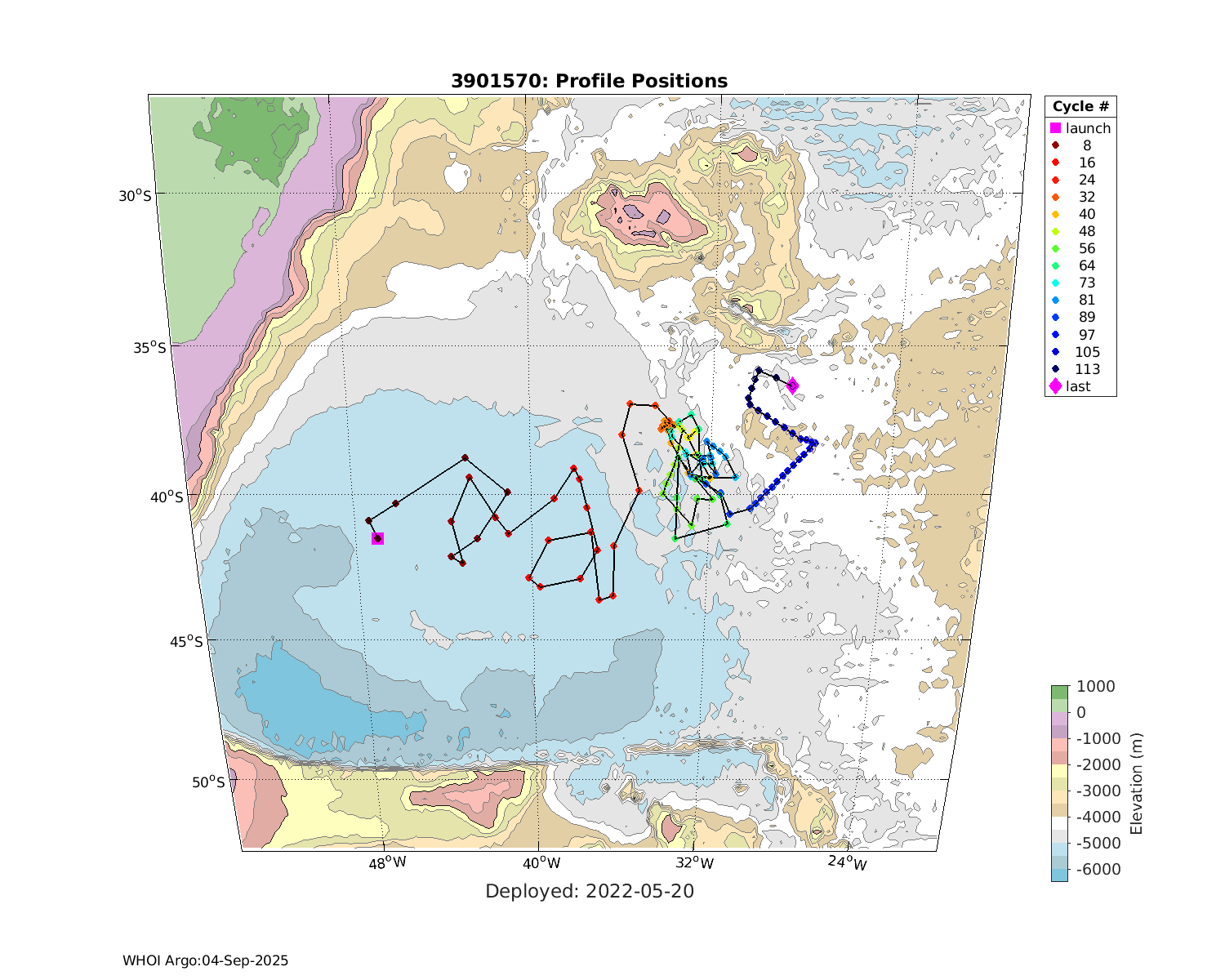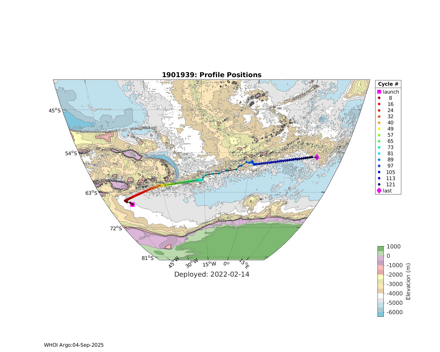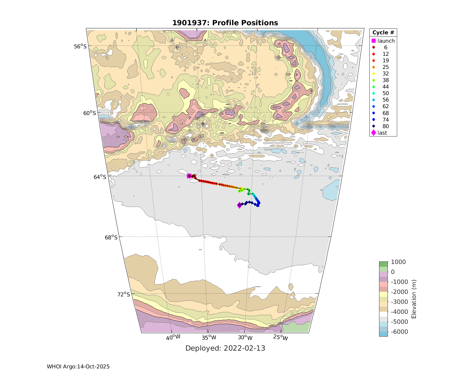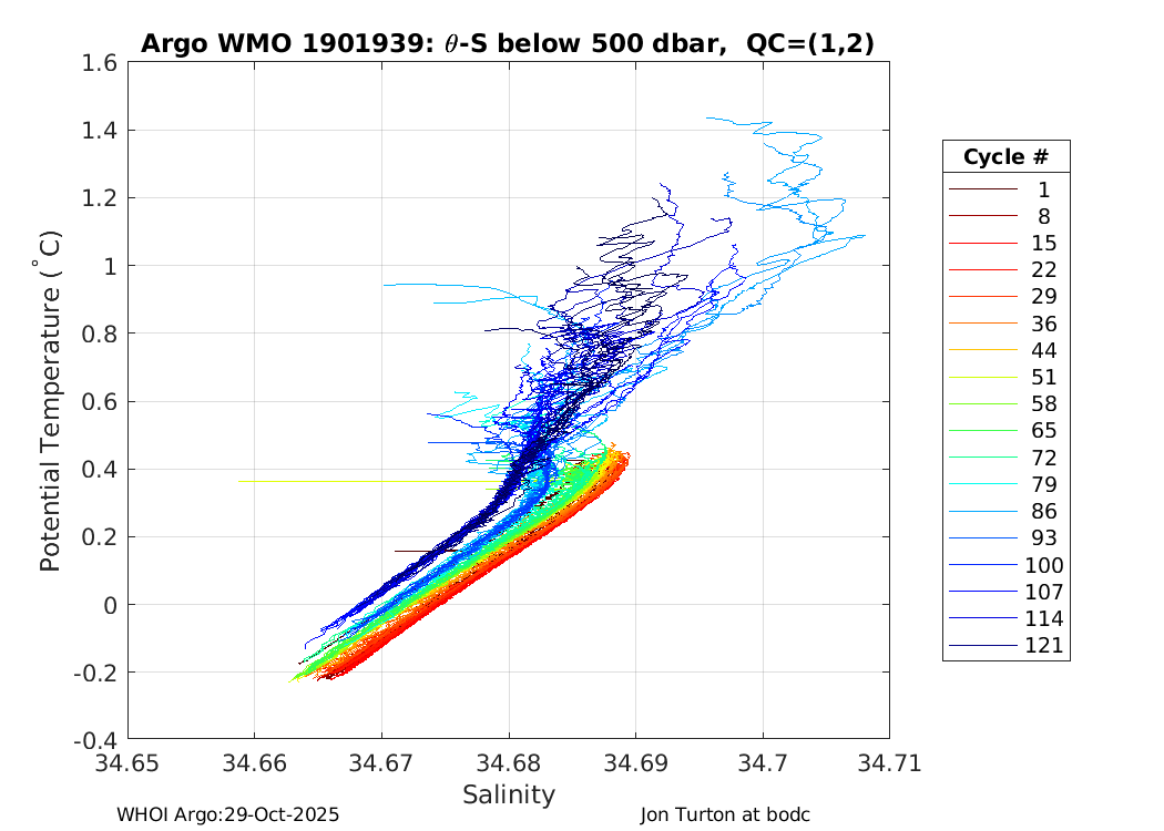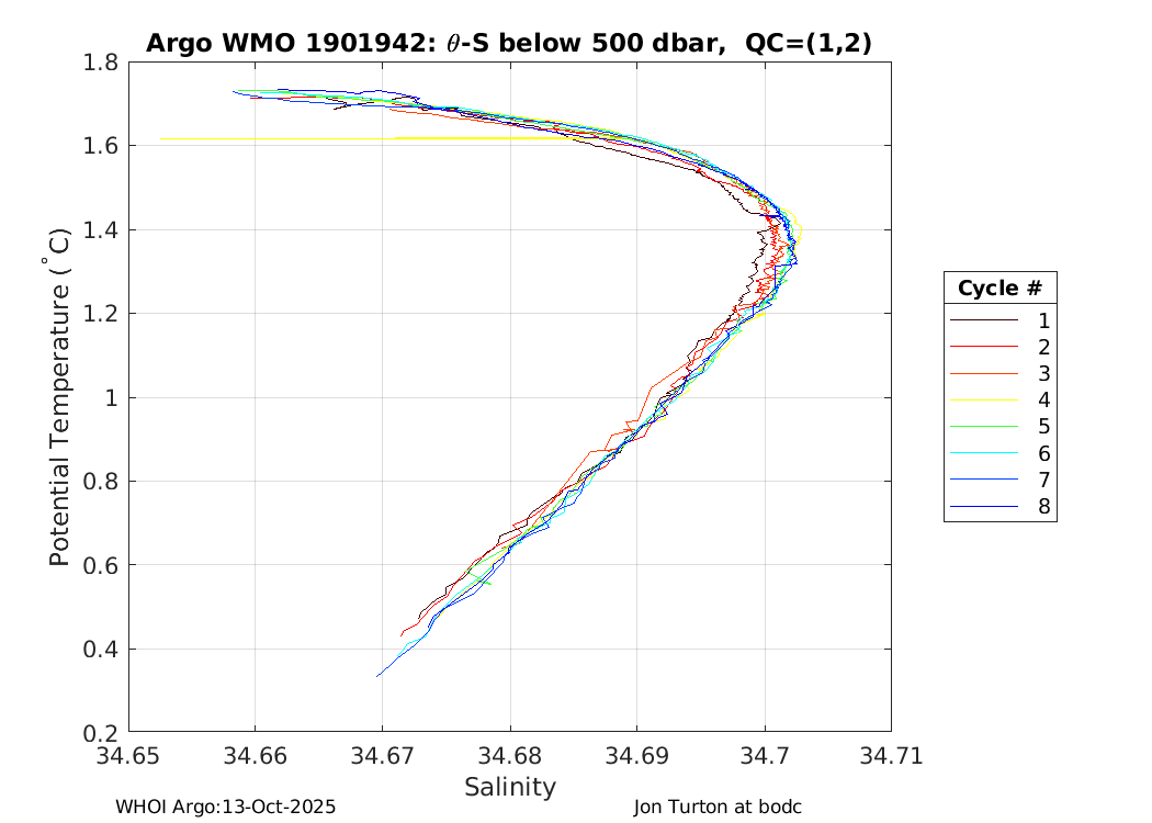 | WMO: #1901918 DAC: bodc PI: Jon Turton APEX: #7025 DRUCK_2900PSIA: #3987893 SBE41_V3: #6555 Altimeter Comparison (IFREMER) EuroArgo Link | ![]() |