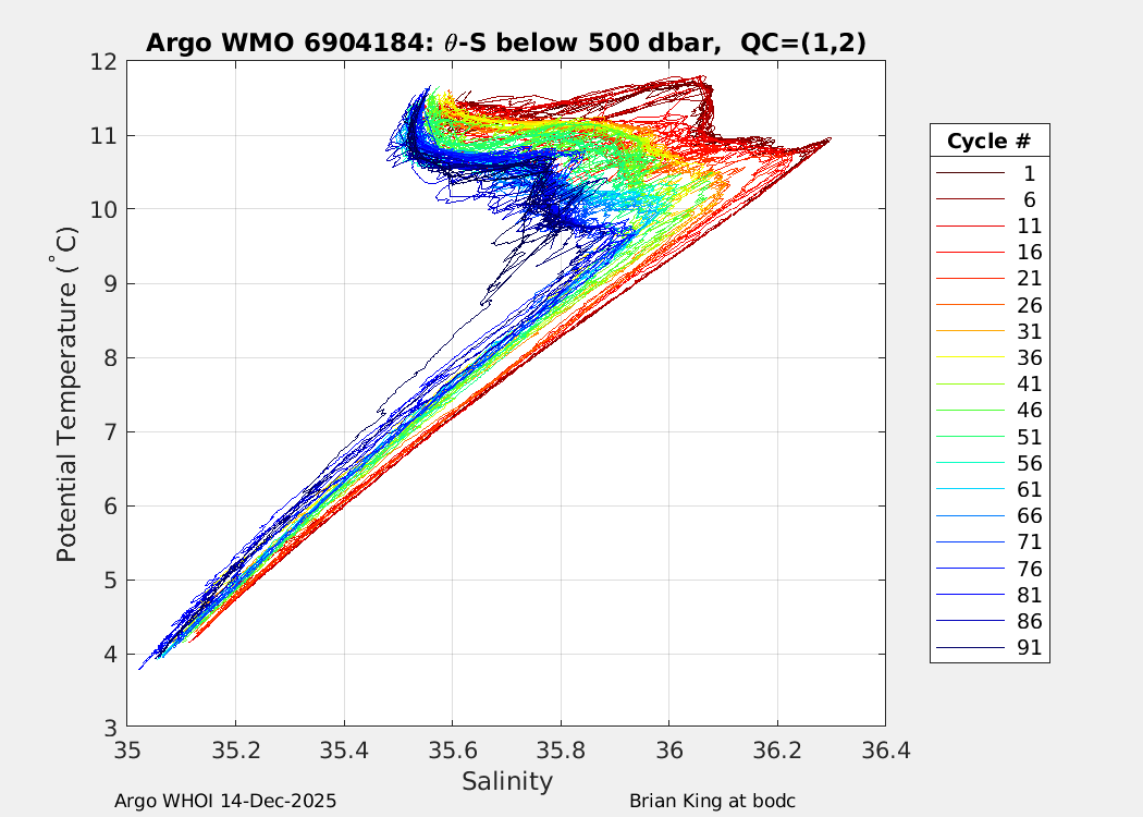 | WMO: #6904184 DAC: bodc PI: Brian King PROVOR_III: # DRUCK_2900PSIA: #11892862 SBE41CP_V7.2.5: #14444 AANDERAA_OPTODE_4330: #3675 SATLANTIC_OCR504_ICSW: #2219 ECO_FLBBCD: #6705 SEAFET: #11113 SUNA_V2: #1758 Altimeter Comparison (IFREMER) EuroArgo Link | ![]() |