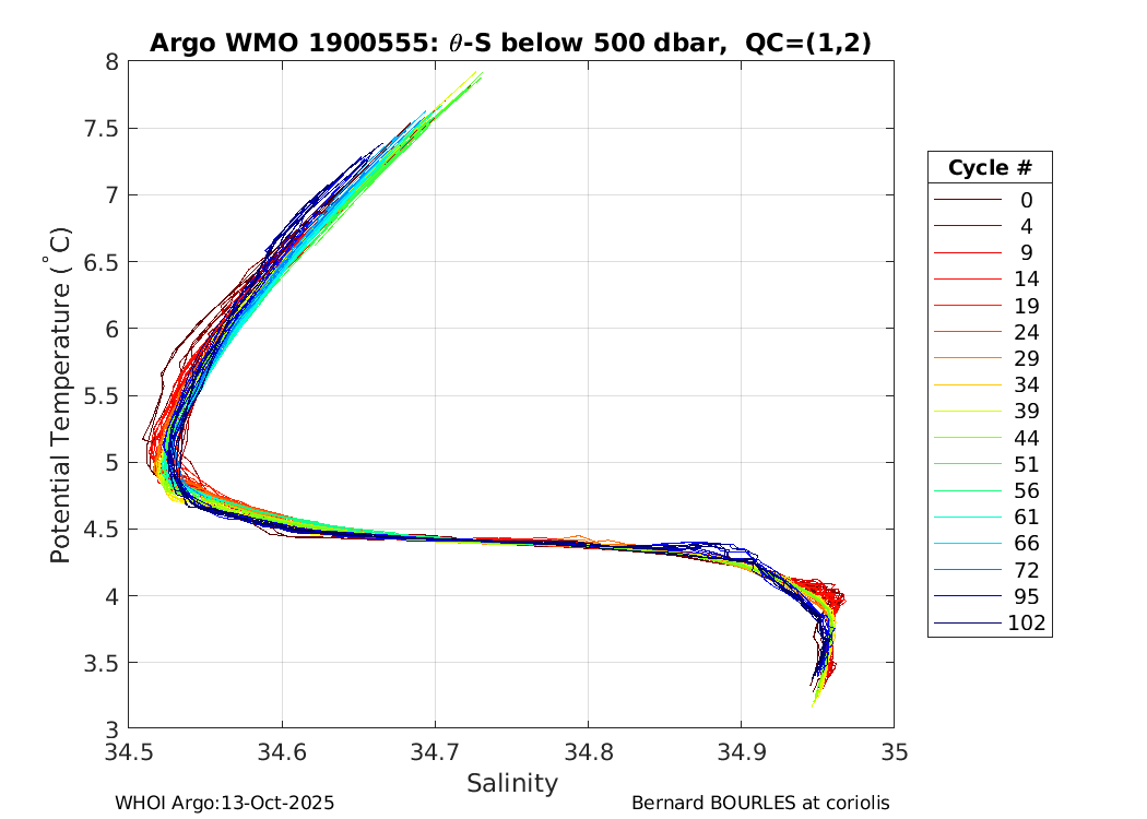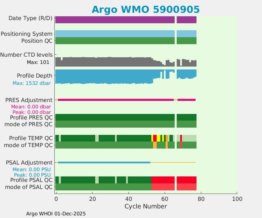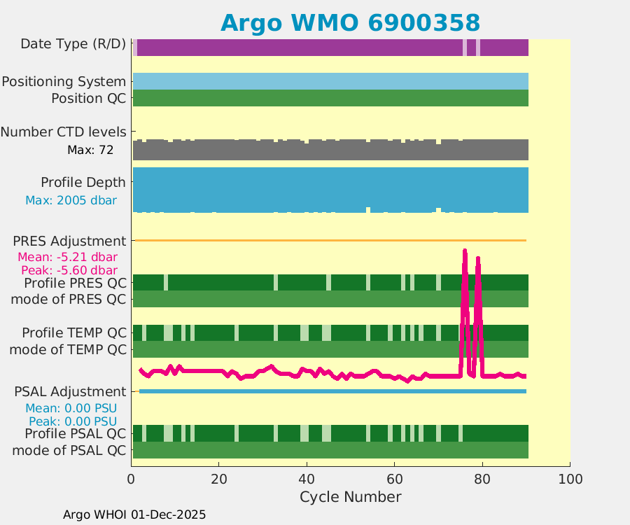 | WMO: #6900360 DAC: coriolis PI: Alain SERPETTE APEX: # SBE41: #n/a Altimeter Comparison (IFREMER) EuroArgo Link | ![]() |