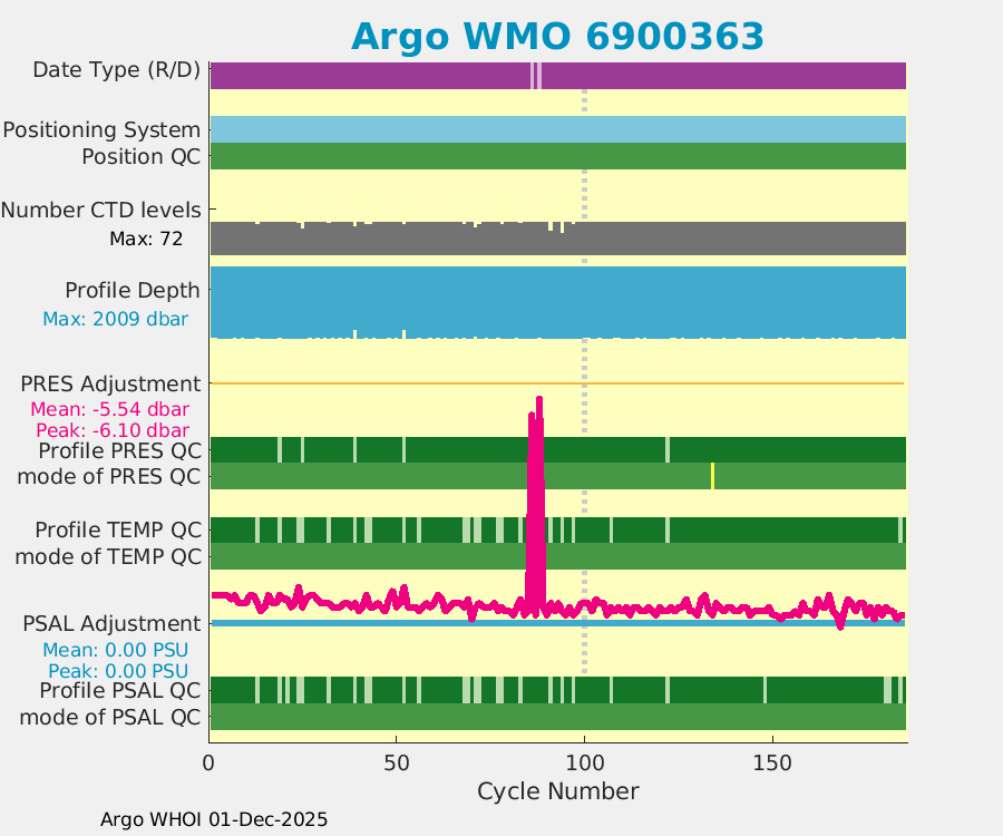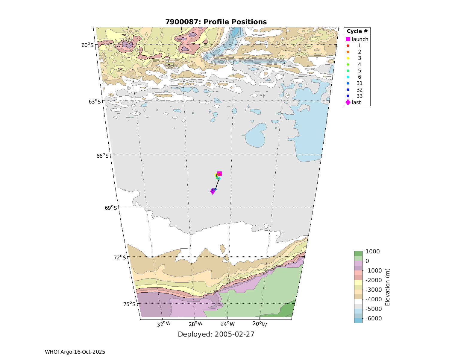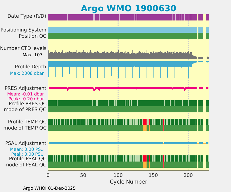 | WMO: #6900364 DAC: coriolis PI: Alain SERPETTE APEX: # SBE41: #n/a Altimeter Comparison (IFREMER) EuroArgo Link | ![]() |