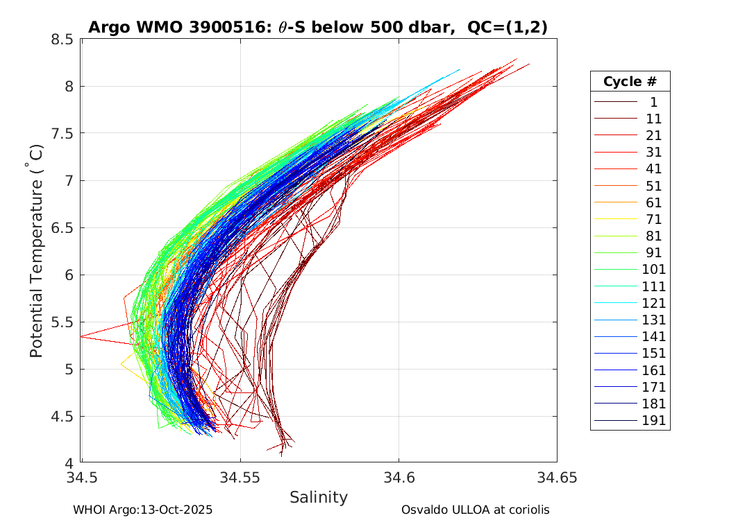 | WMO: #3900515 DAC: coriolis PI: Osvaldo ULLOA APEX: #2400 SBE41: #n/a AANDERAA_OPTODE_3830: #n/a ECO_FLNTU: #n/a Altimeter Comparison (IFREMER) EuroArgo Link | ![]() |