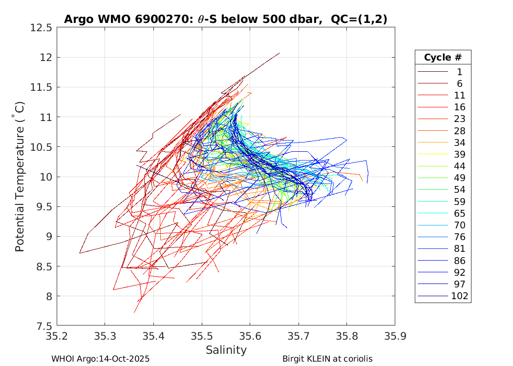 | WMO: #6900263 DAC: coriolis PI: Birgit KLEIN APEX: #2150 DRUCK_2900PSIA: #7841 SBE41: #n/a Altimeter Comparison (IFREMER) EuroArgo Link | ![]() |