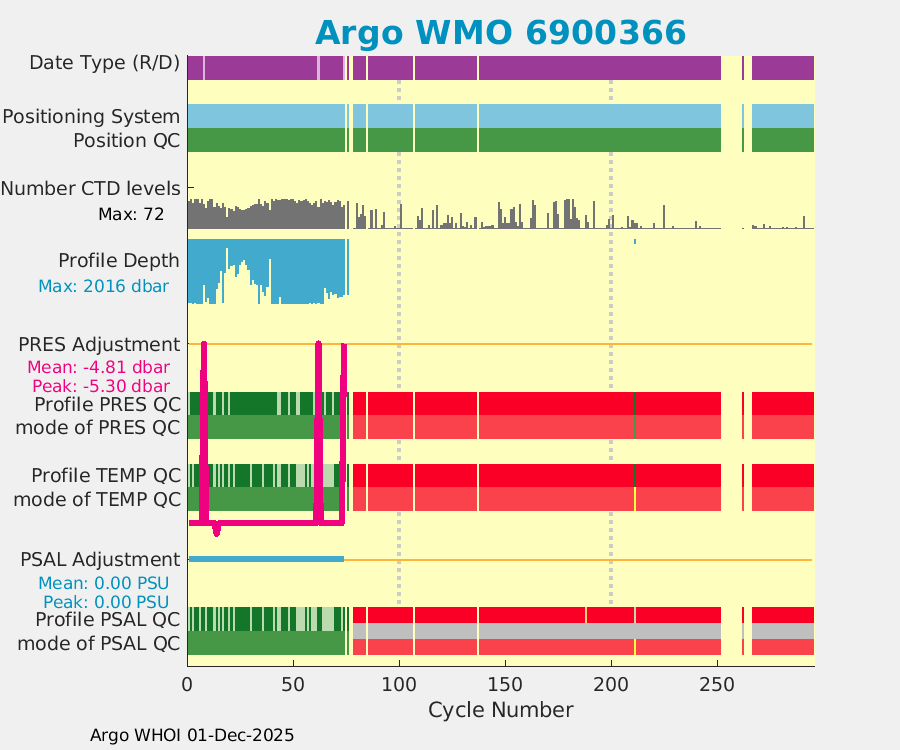| WMO: #6900366 DAC: coriolis PI: Alain SERPETTE APEX: # SBE41: #n/a Altimeter Comparison (IFREMER) EuroArgo Link | ![]() |
