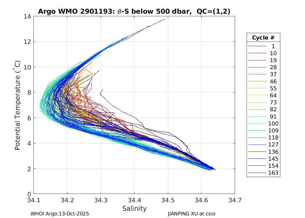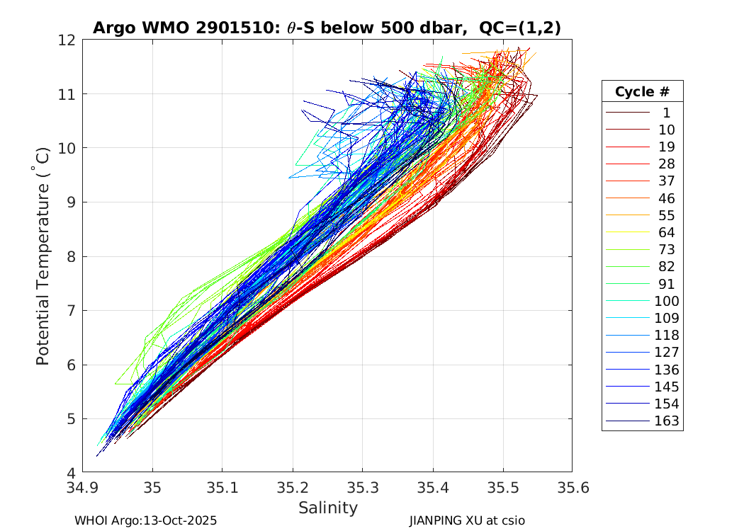 | WMO: #2901510 DAC: csio PI: JIANPING XU APEX: # SBE41: #5382 2900PSIA: #2082405 Altimeter Comparison (IFREMER) EuroArgo Link | ![]() |