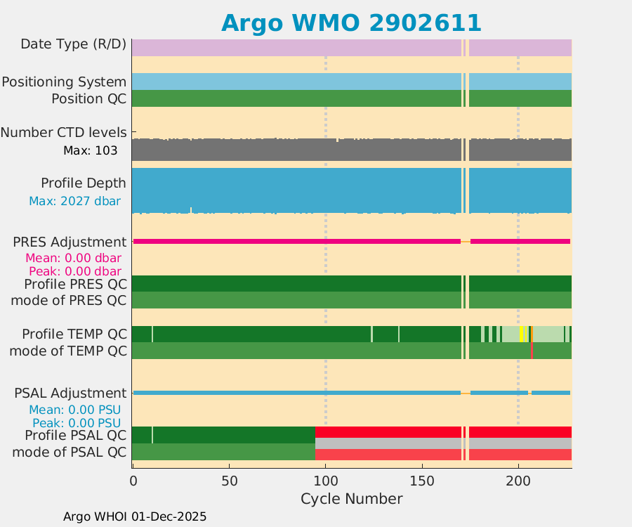 | WMO: #2901570 DAC: csio PI: JIANPING XU APEX: #6959 SBE41: #6405 2900PSIA: #3846659 Altimeter Comparison (IFREMER) EuroArgo Link | ![]() |