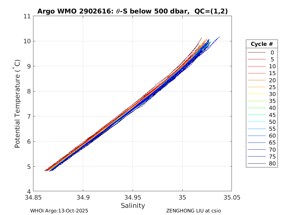 | WMO: #2901567 DAC: csio PI: JIANPING XU APEX: #6575 SBE41: #6089 2900PSIA: #3590579 Altimeter Comparison (IFREMER) EuroArgo Link | ![]() |