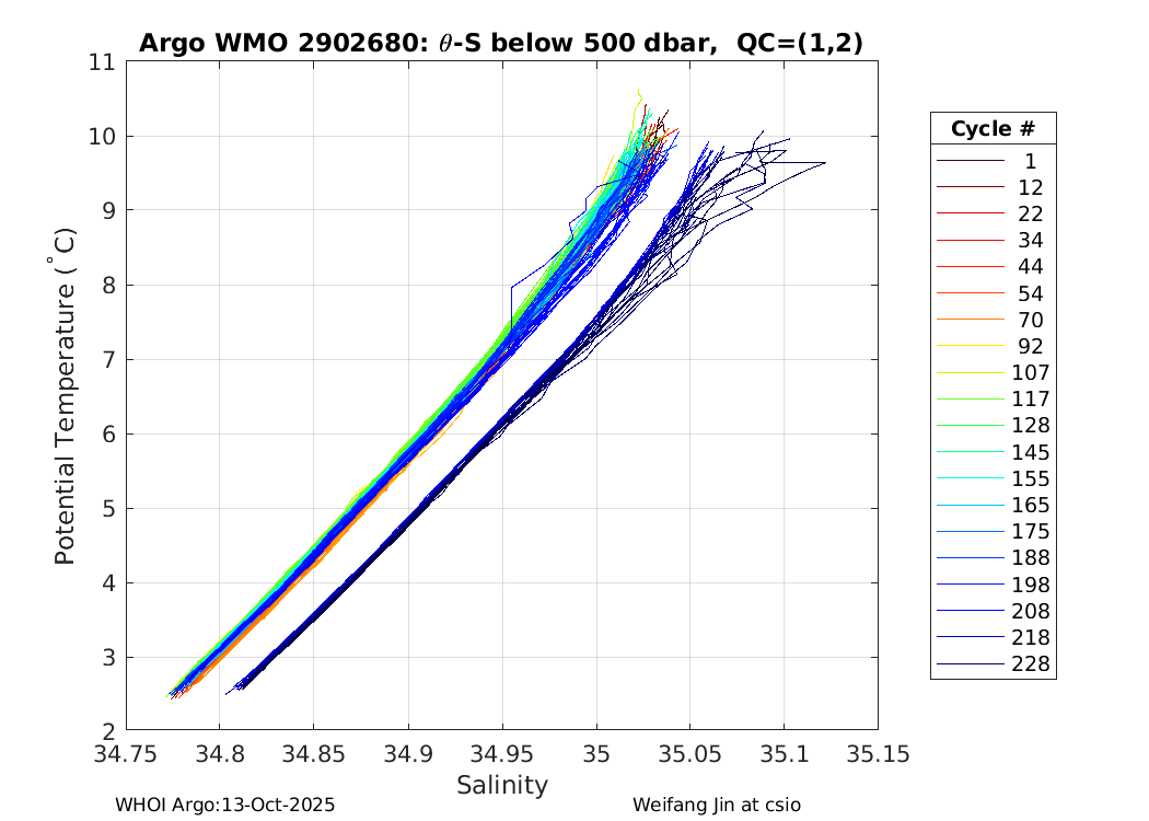 | WMO: #2902681 DAC: csio PI: Weifang Jin APEX: #7721 SBE41: #7848 DRUCK_2900PSIA: #10174831 Altimeter Comparison (IFREMER) EuroArgo Link | ![]() |