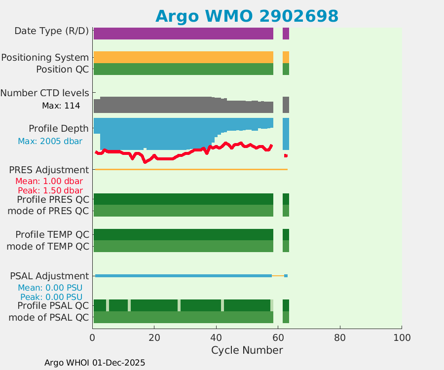 | WMO: #2902694 DAC: csio PI: JIANPING XU COPEX: # SBE41: #6476 DRUCK: #3908590 Altimeter Comparison (IFREMER) EuroArgo Link | ![]() |