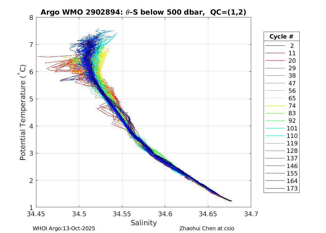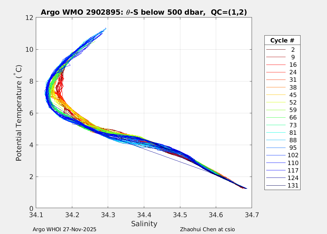 | WMO: #2902886 DAC: csio PI: MEIXUN ZHAO PROVOR_V: # SBE41CP_V7.2.5: #17110 DRUCK_2900PSIA: #12058310 AANDERAA_OPTODE_4330: #3918 SATLANTIC_OCR504_ICSW: #2286 ECO_FLBB2: #7468 SUNA_V2: #1879 SEAFET: #11095 Altimeter Comparison (IFREMER) EuroArgo Link | n/a | n/a | ![]() |