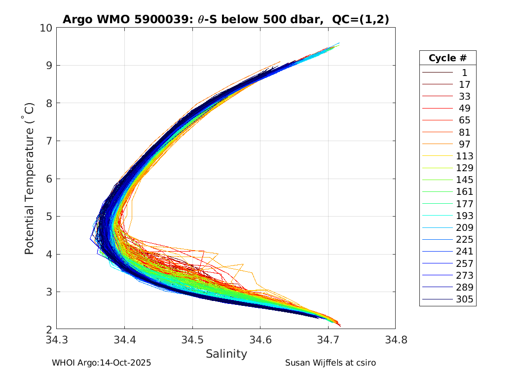 | WMO: #5900042 DAC: csiro PI: Susan Wijffels APEX: #621 SBE41: #727 AMETEK: #2657730021 Altimeter Comparison (IFREMER) EuroArgo Link | ![]() |