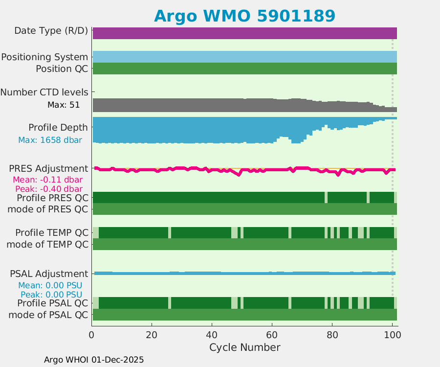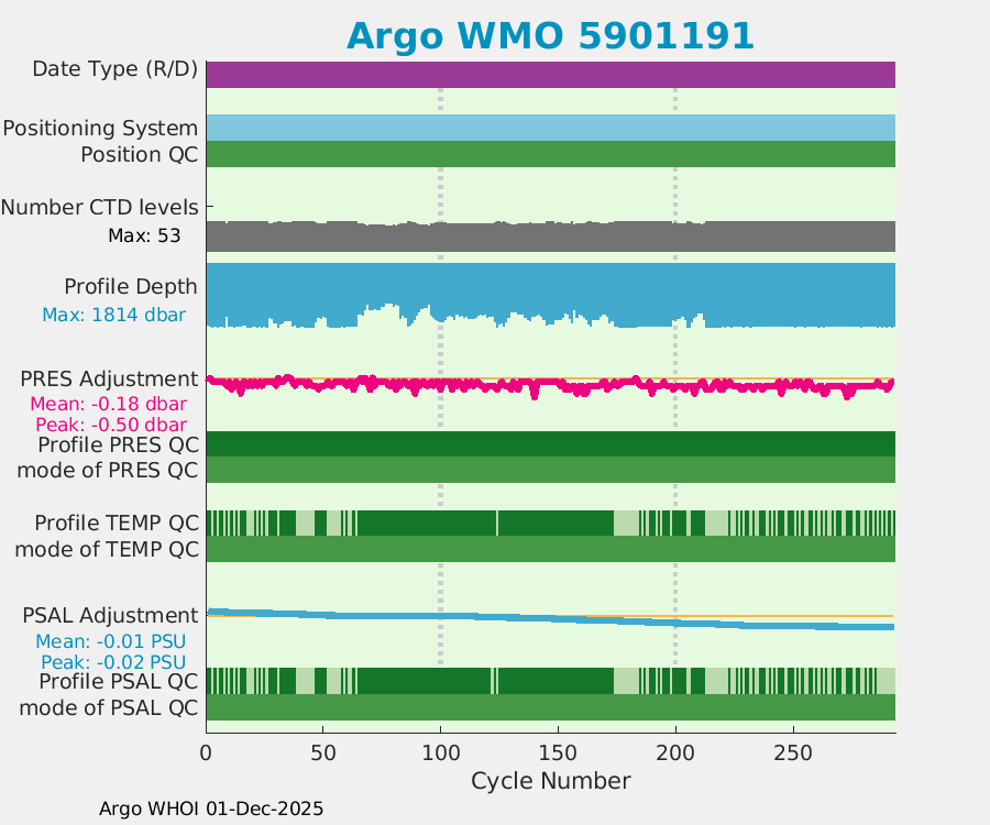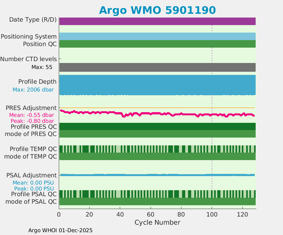 | WMO: #5901191 DAC: csiro PI: Susan Wijffels APEX: #2166 SBE41_V2.5: #2166 DRUCK: #7726 Altimeter Comparison (IFREMER) EuroArgo Link | ![]() |