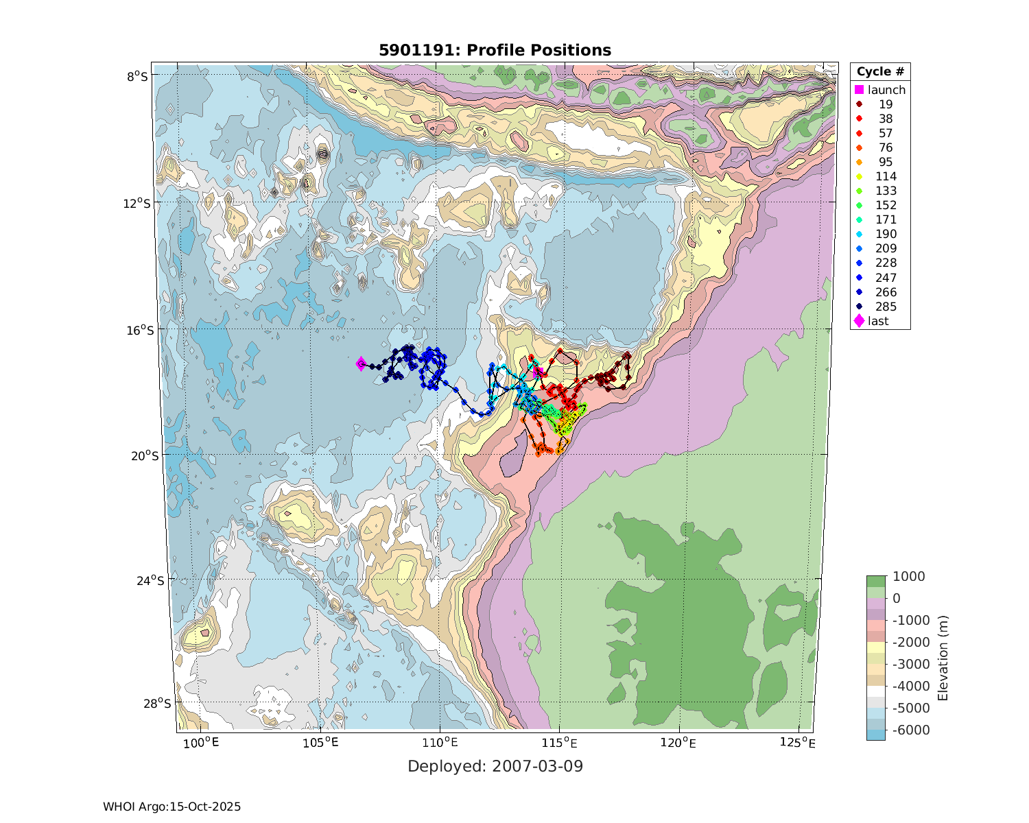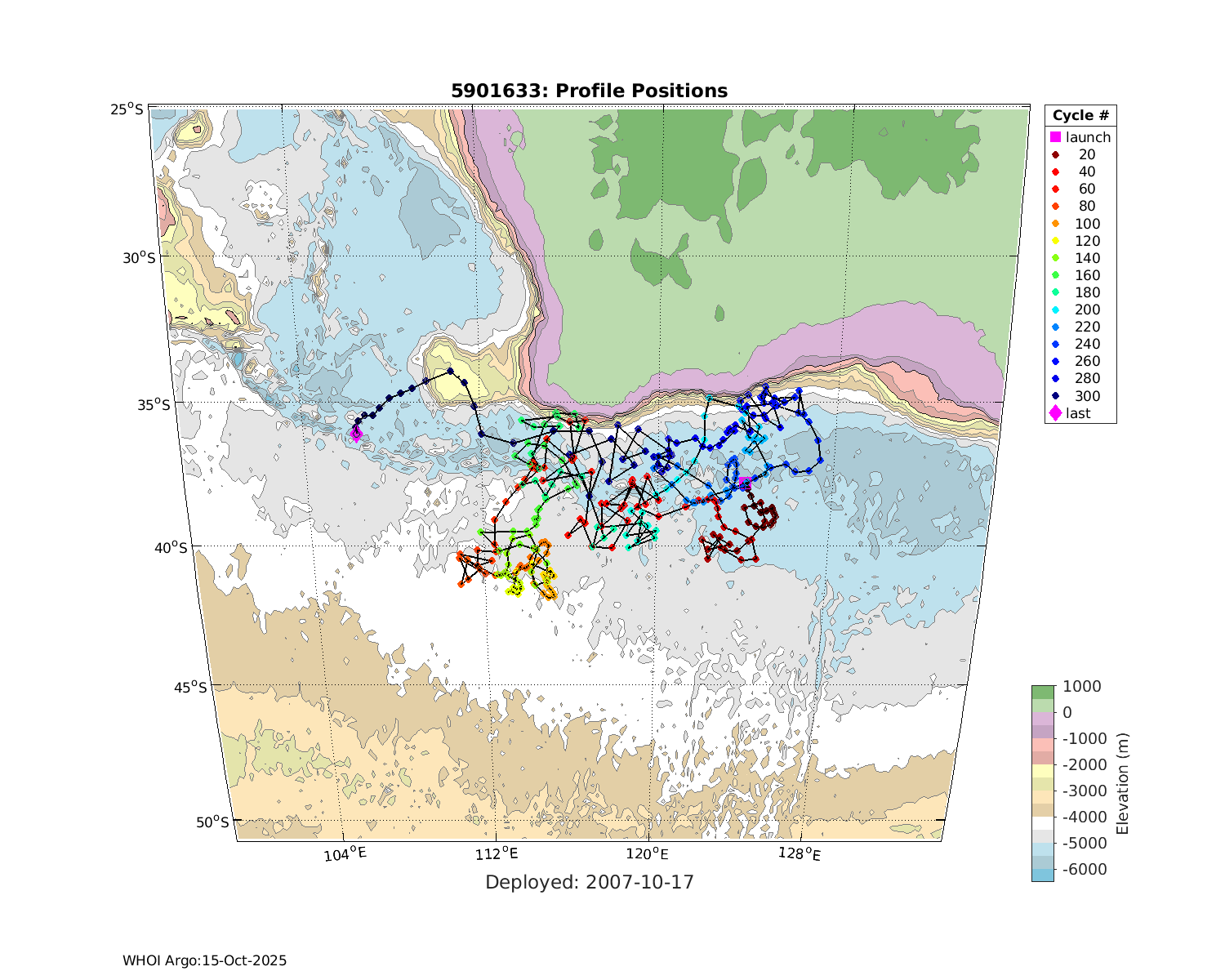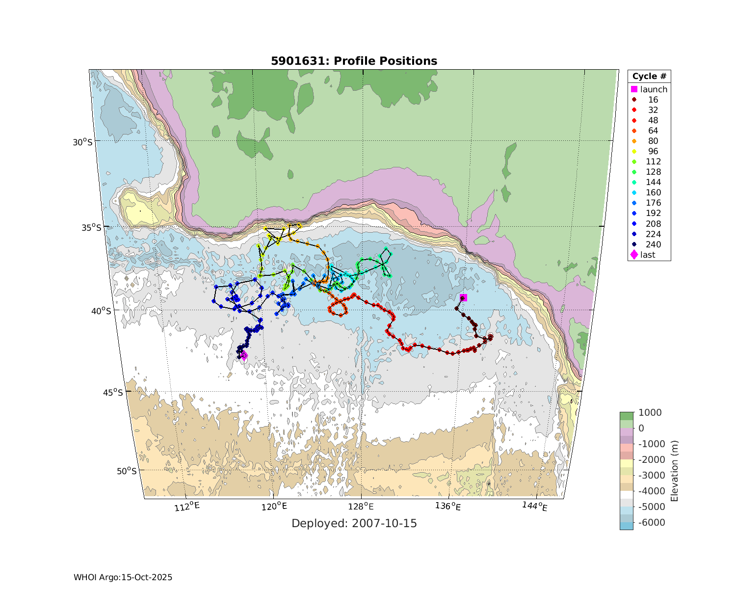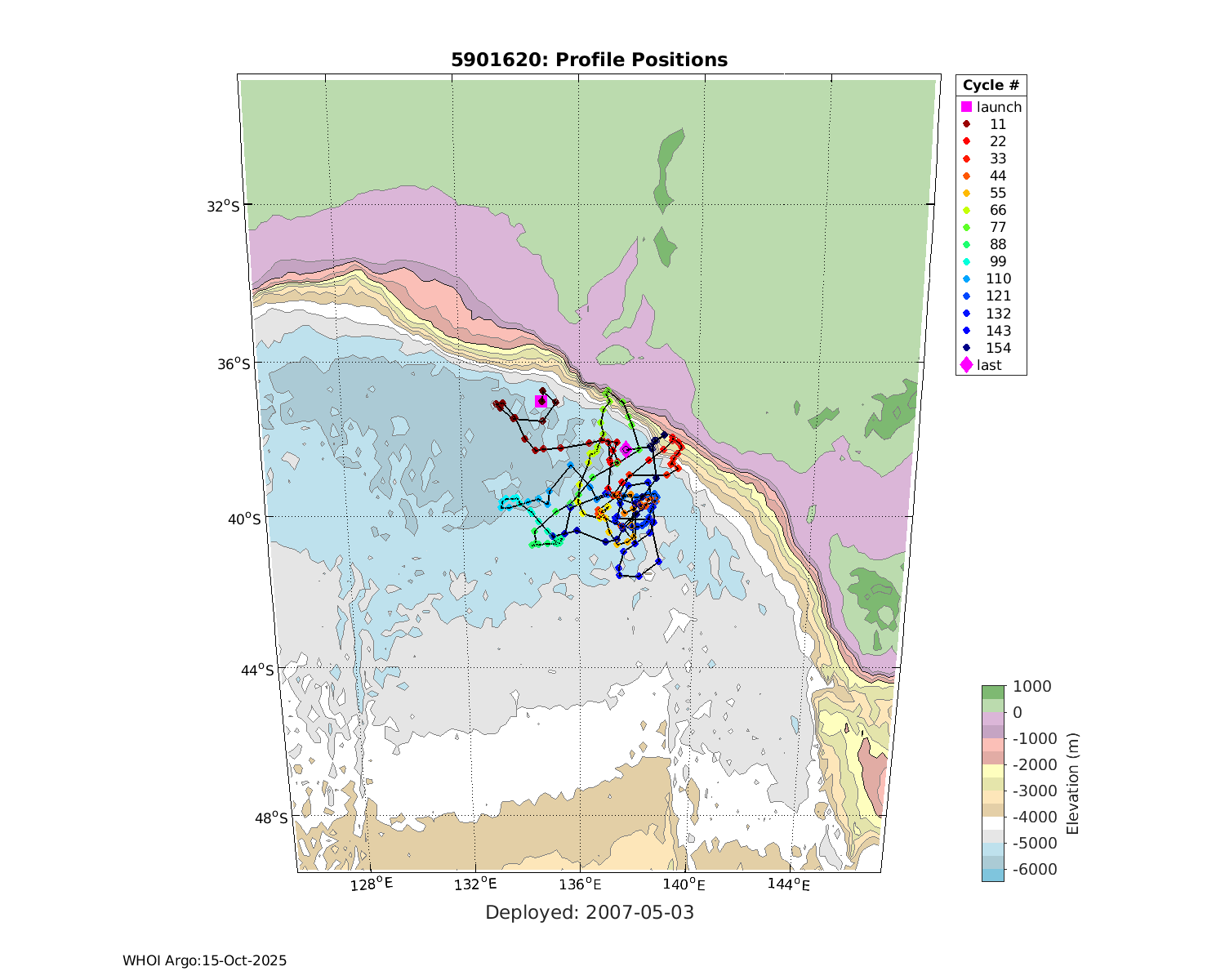 | WMO: #5901625 DAC: csiro PI: Susan Wijffels APEX: #2860 SBE41_V2.6: #2930 DRUCK: #10492 Altimeter Comparison (IFREMER) EuroArgo Link | ![]() |