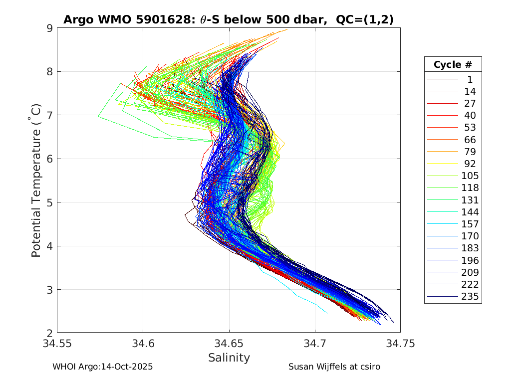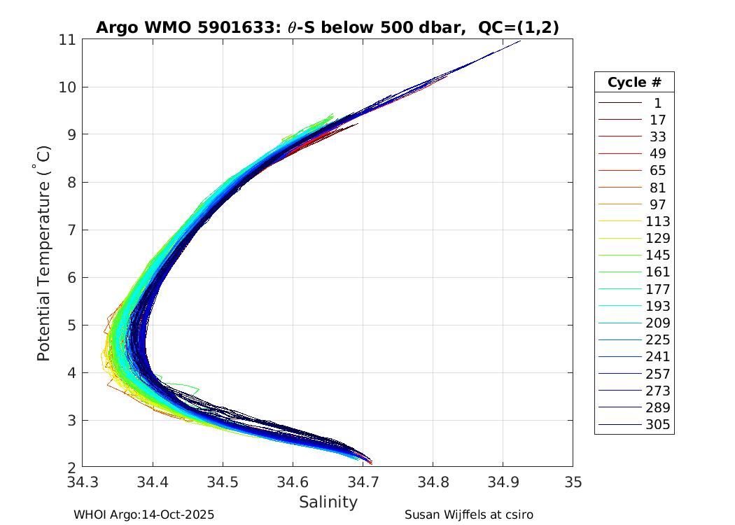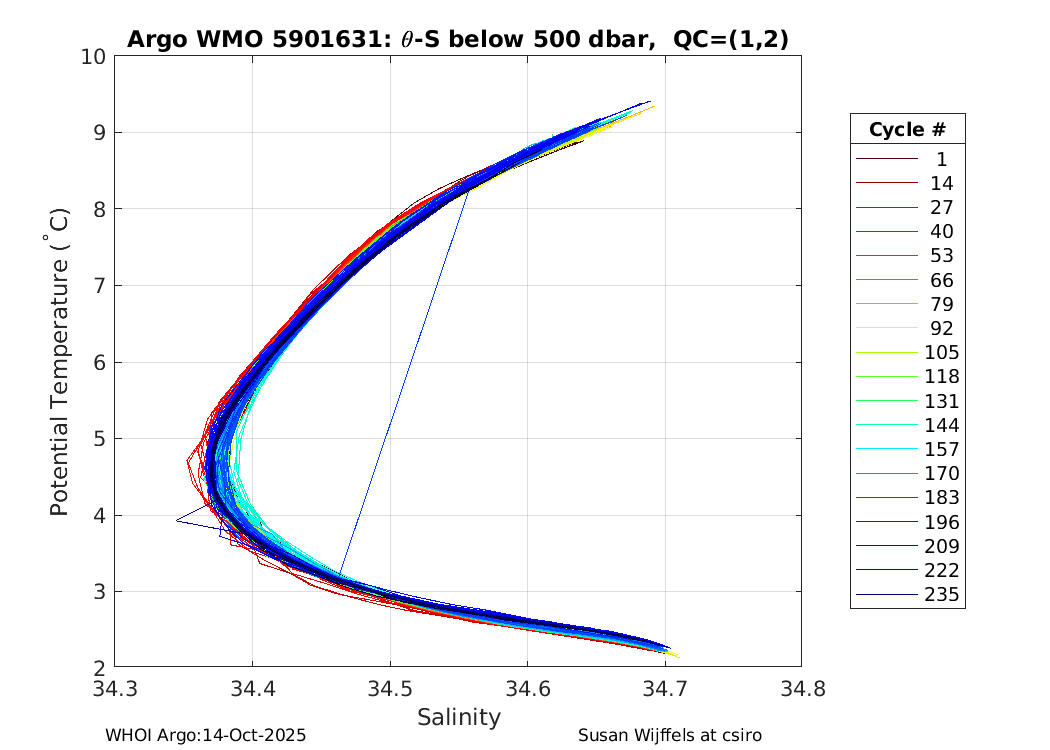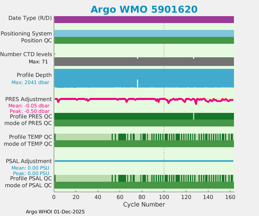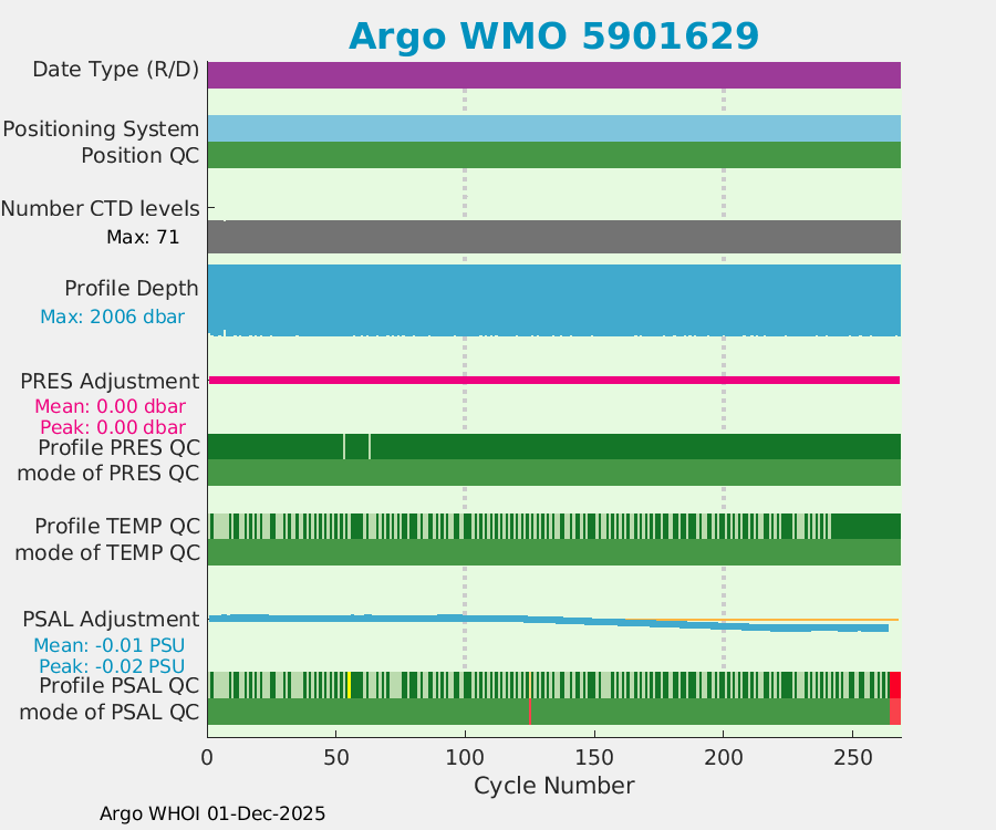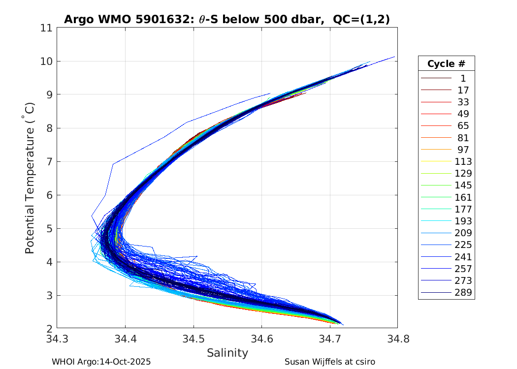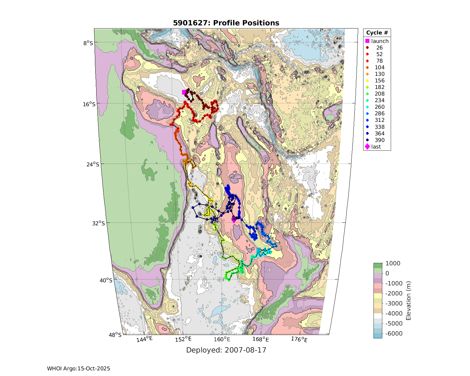 | WMO: #5901625 DAC: csiro PI: Susan Wijffels APEX: #2860 SBE41_V2.6: #2930 DRUCK: #10492 Altimeter Comparison (IFREMER) EuroArgo Link | ![]() |