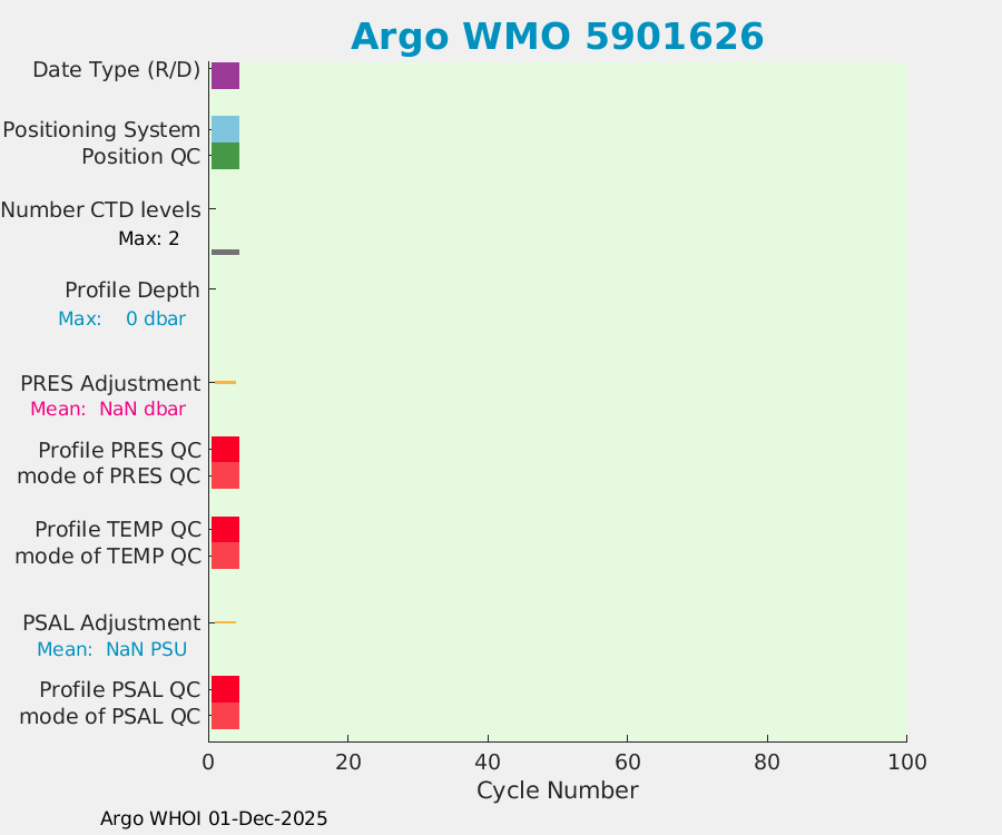 | WMO: #5901626 DAC: csiro PI: Susan Wijffels APEX: #2959 SBE41_V2.6: #2987 DRUCK: #10262 Altimeter Comparison (IFREMER) EuroArgo Link | n/a | n/a | ![]() |