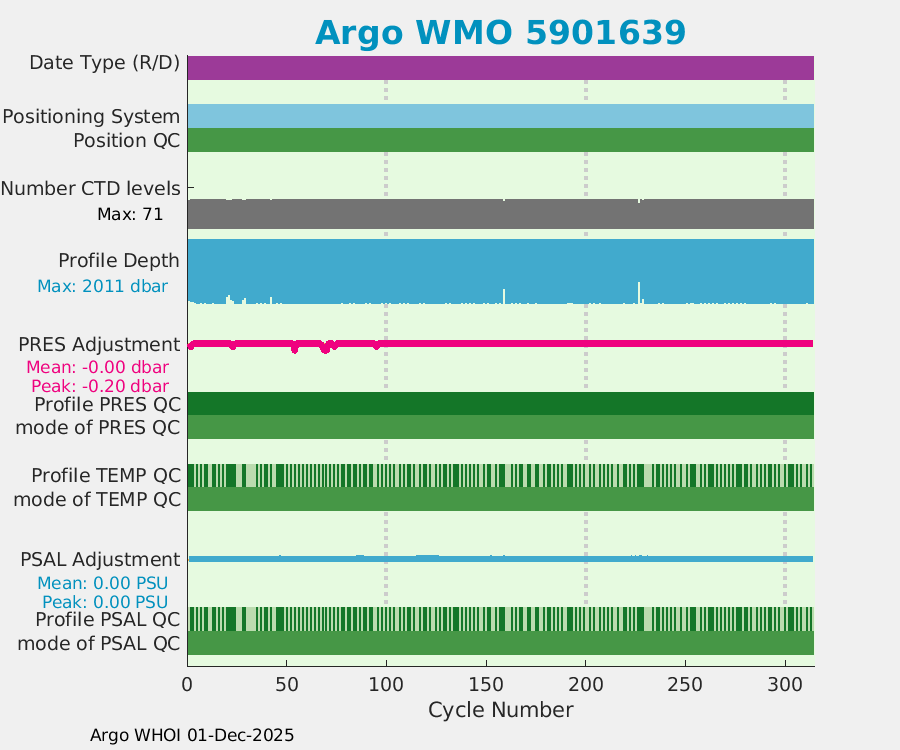 | WMO: #5901627 DAC: csiro PI: Susan Wijffels APEX: #2194 SBE41_V2.6: #2297 DRUCK: #7857 Altimeter Comparison (IFREMER) EuroArgo Link | ![]() |