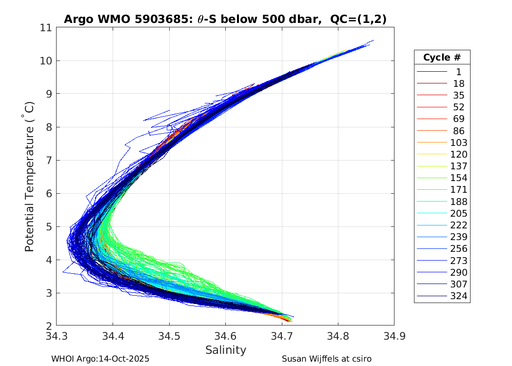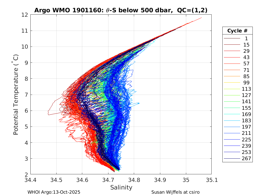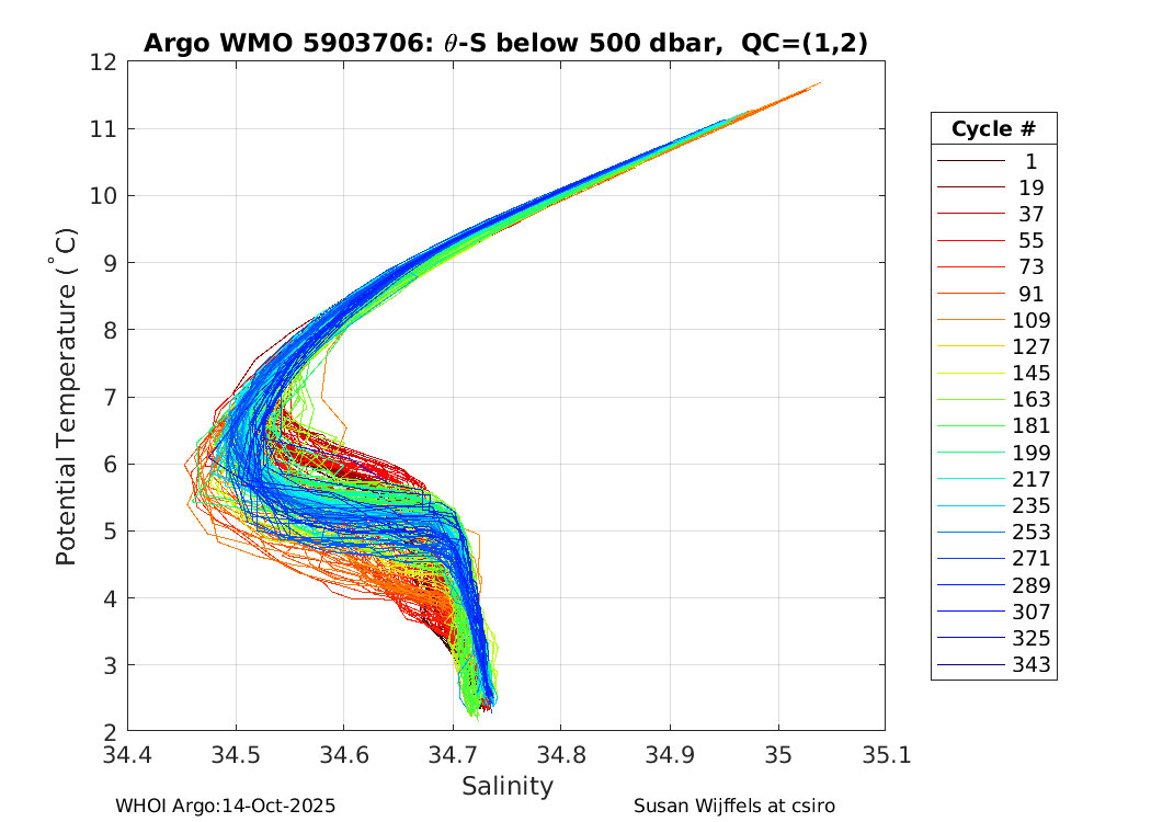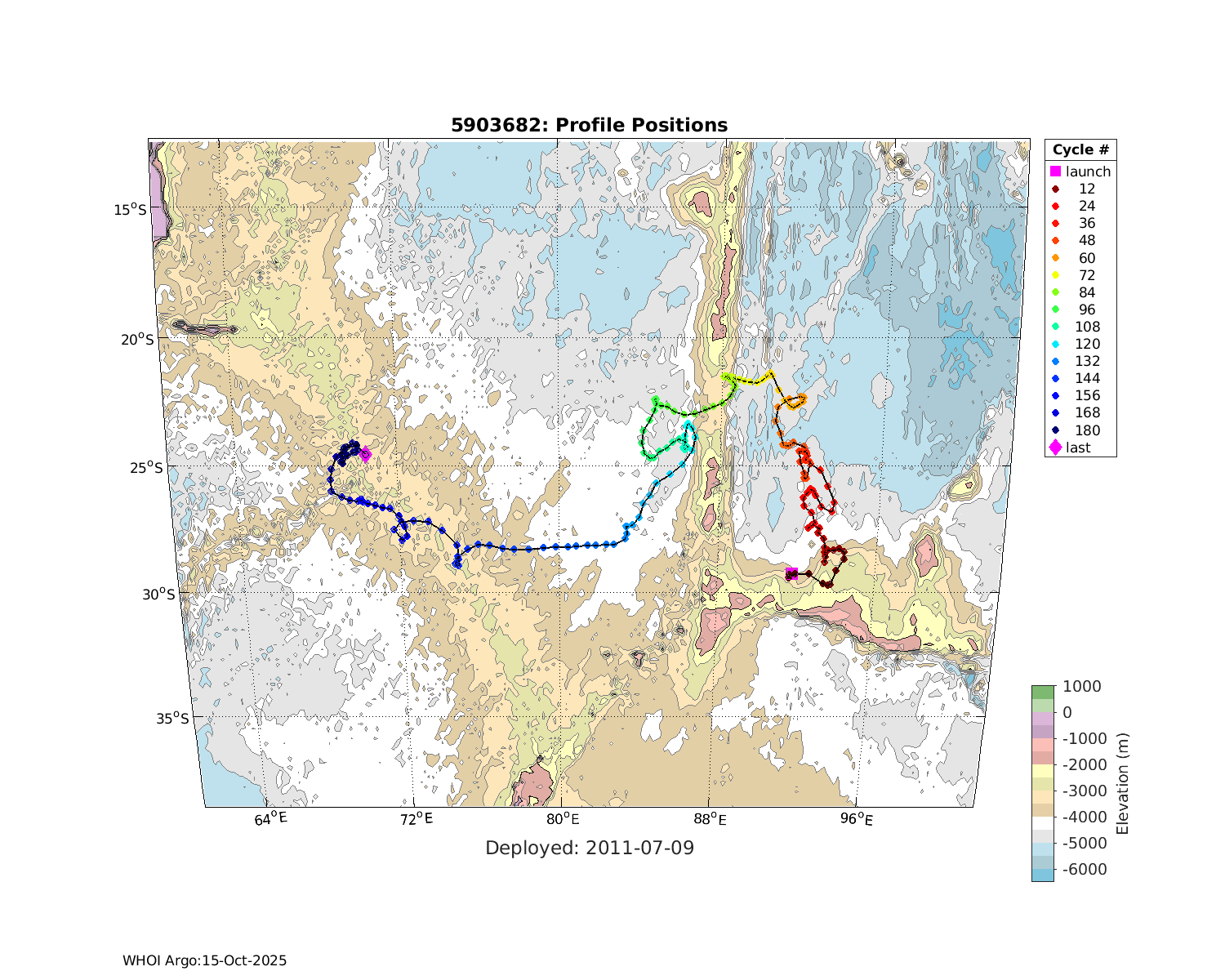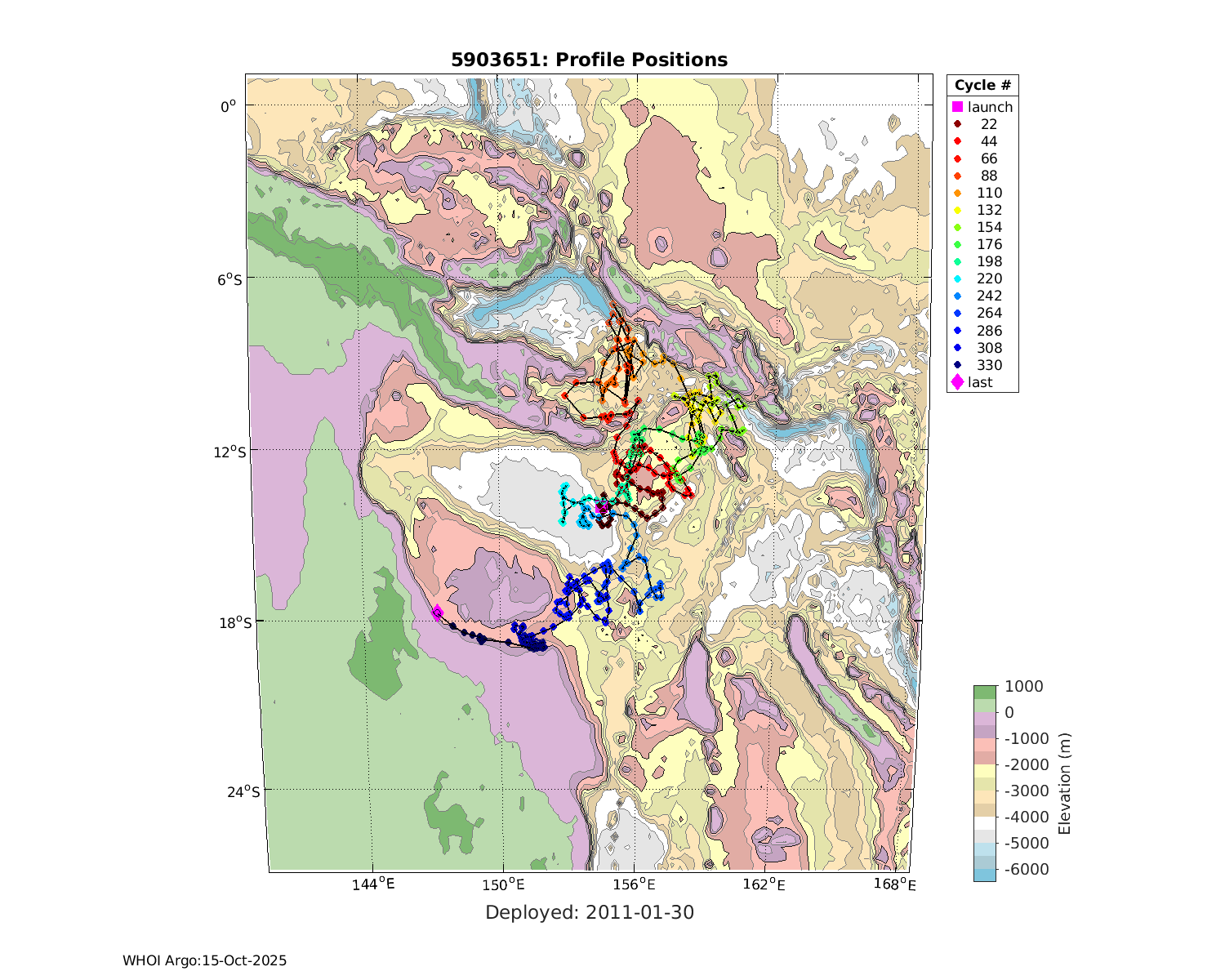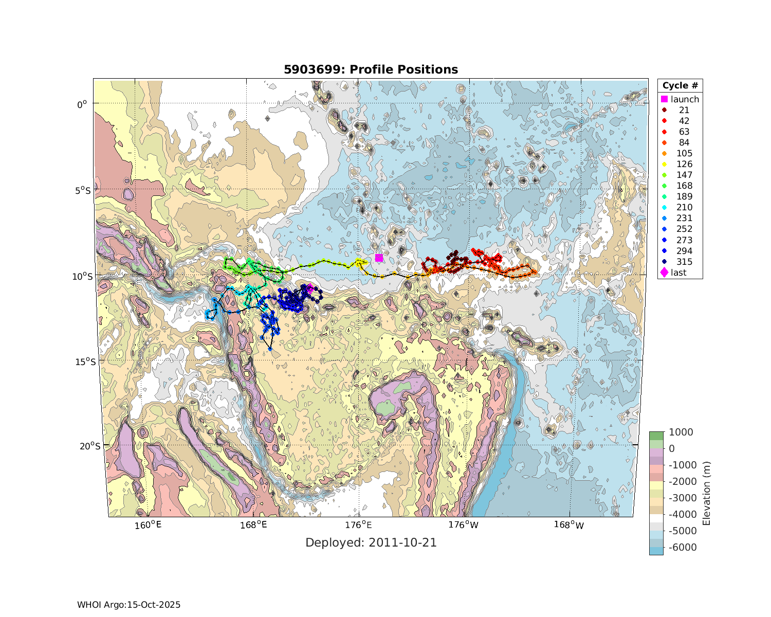 | WMO: #5903673 DAC: csiro PI: Susan Wijffels APEX: #5356 SBE41_V3: #5137 KISTLER: #2075141 Altimeter Comparison (IFREMER) EuroArgo Link | ![]() |