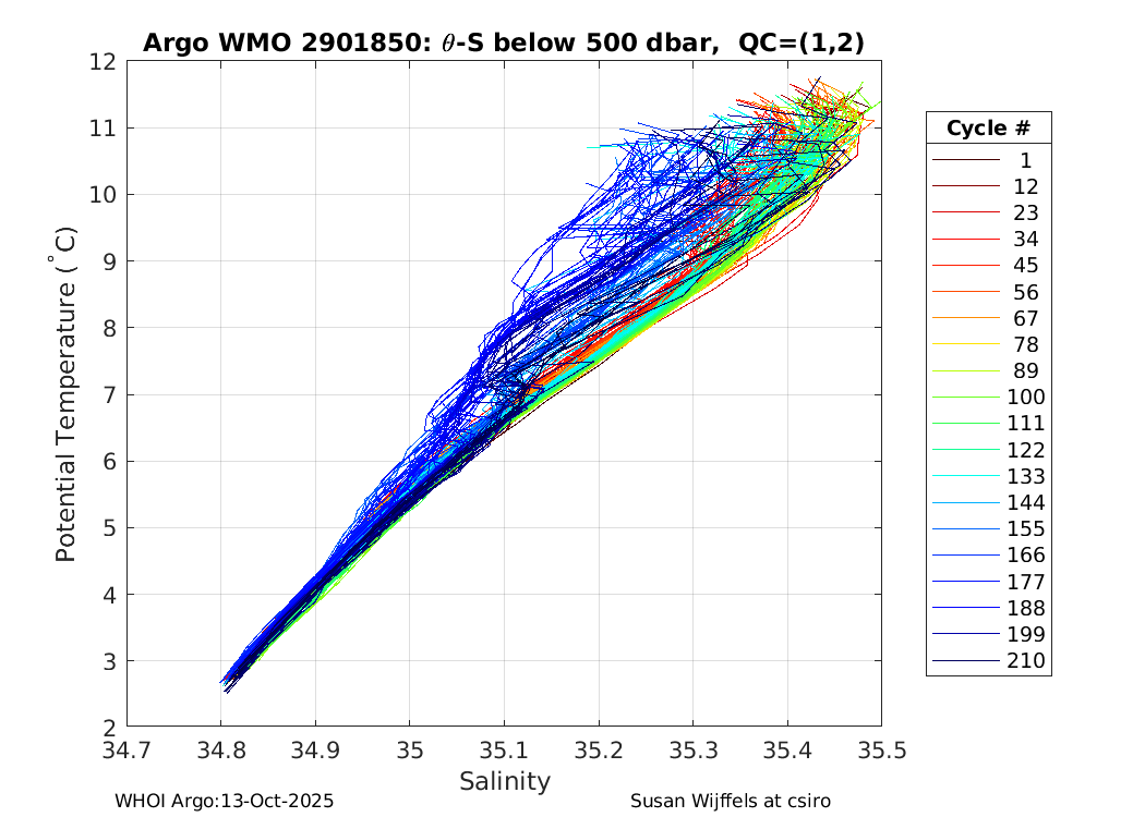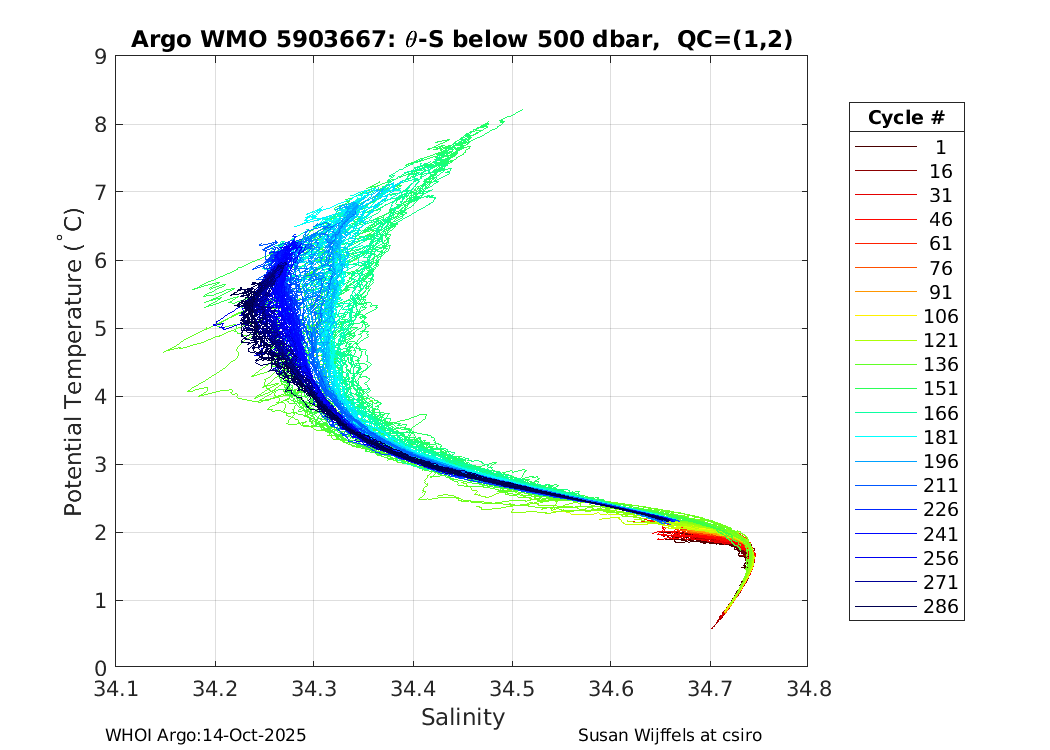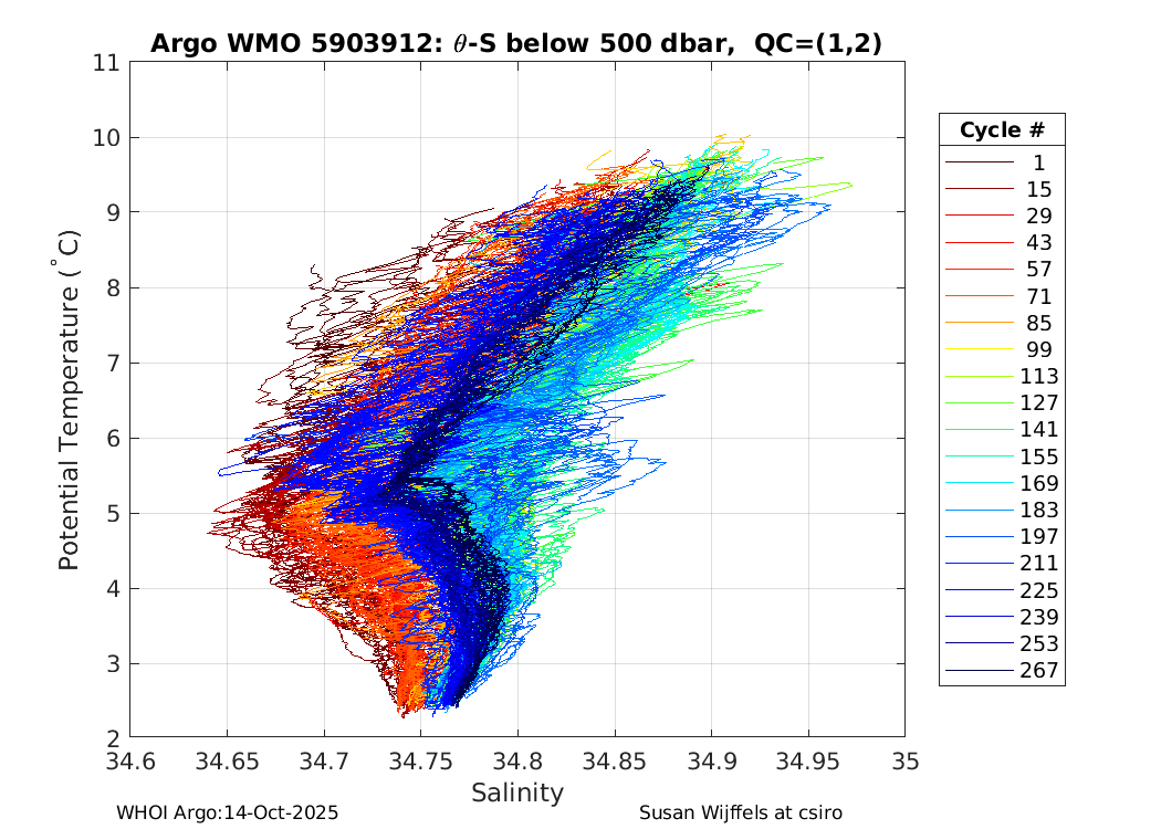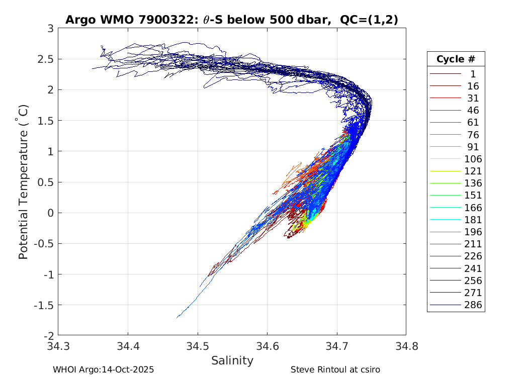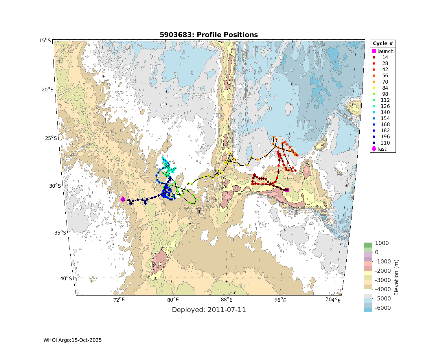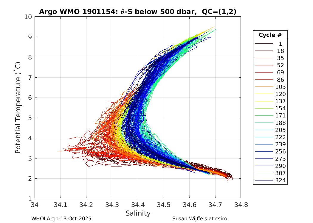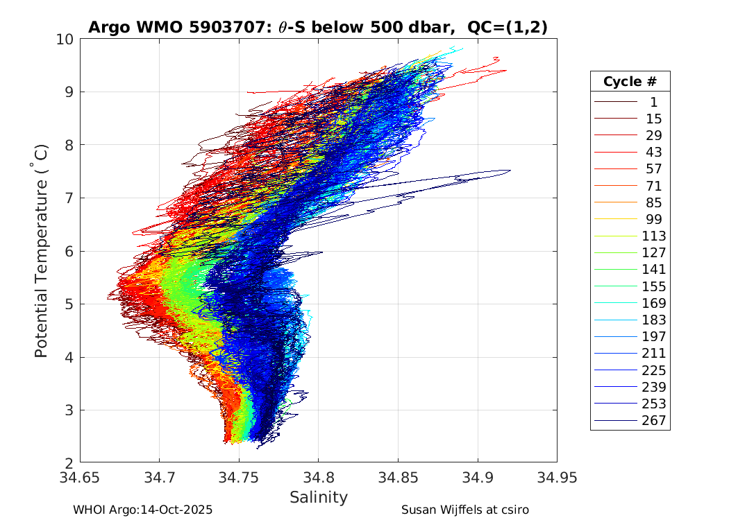 | WMO: #5903673 DAC: csiro PI: Susan Wijffels APEX: #5356 SBE41_V3: #5137 KISTLER: #2075141 Altimeter Comparison (IFREMER) EuroArgo Link | ![]() |