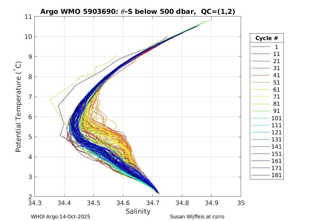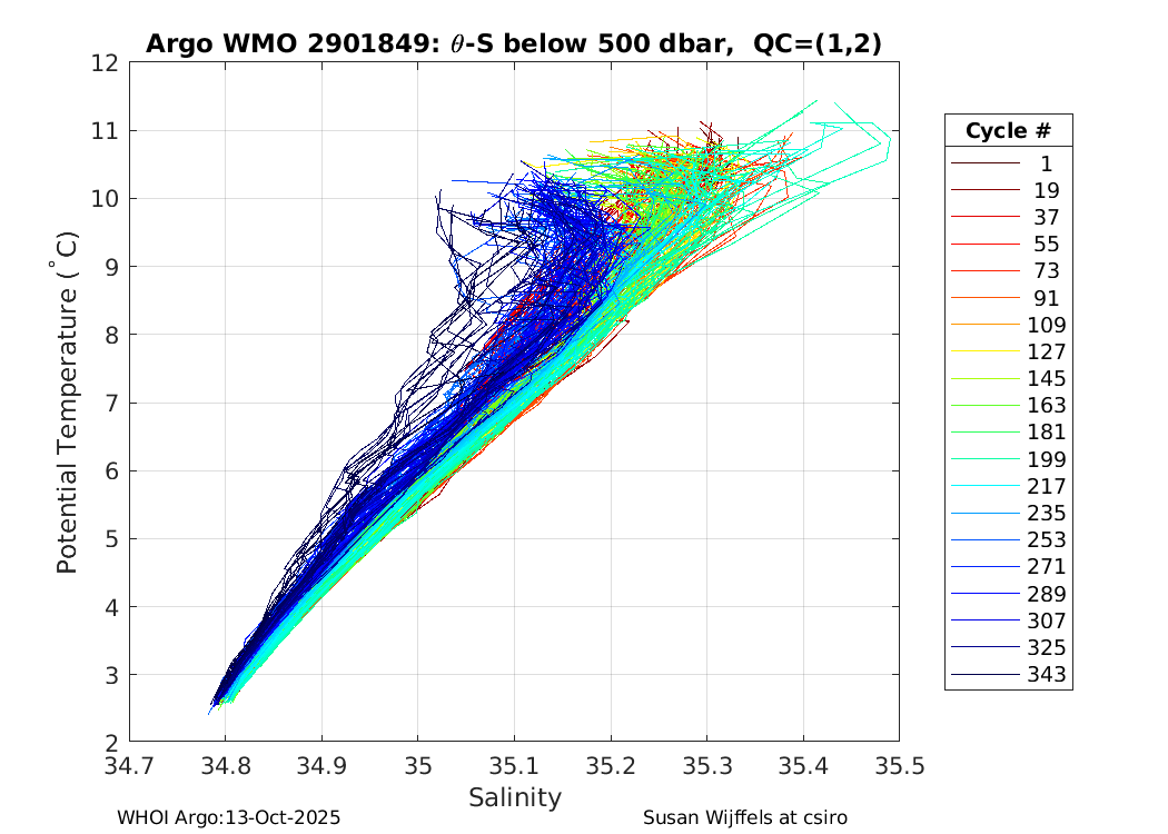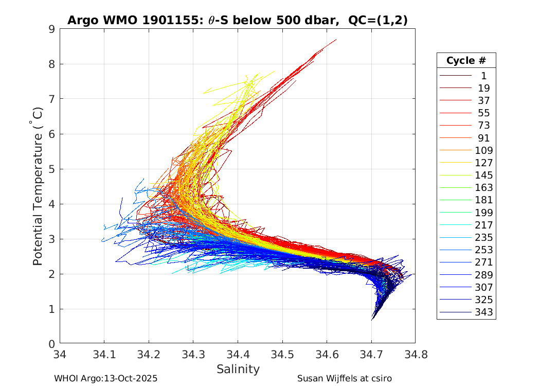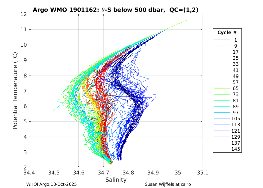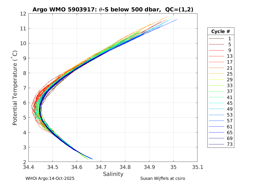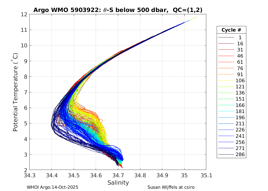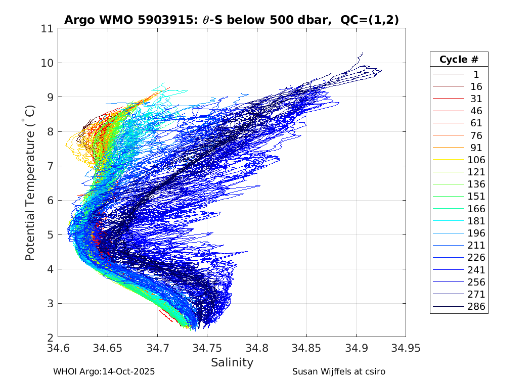 | WMO: #5903673 DAC: csiro PI: Susan Wijffels APEX: #5356 SBE41_V3: #5137 KISTLER: #2075141 Altimeter Comparison (IFREMER) EuroArgo Link | ![]() |