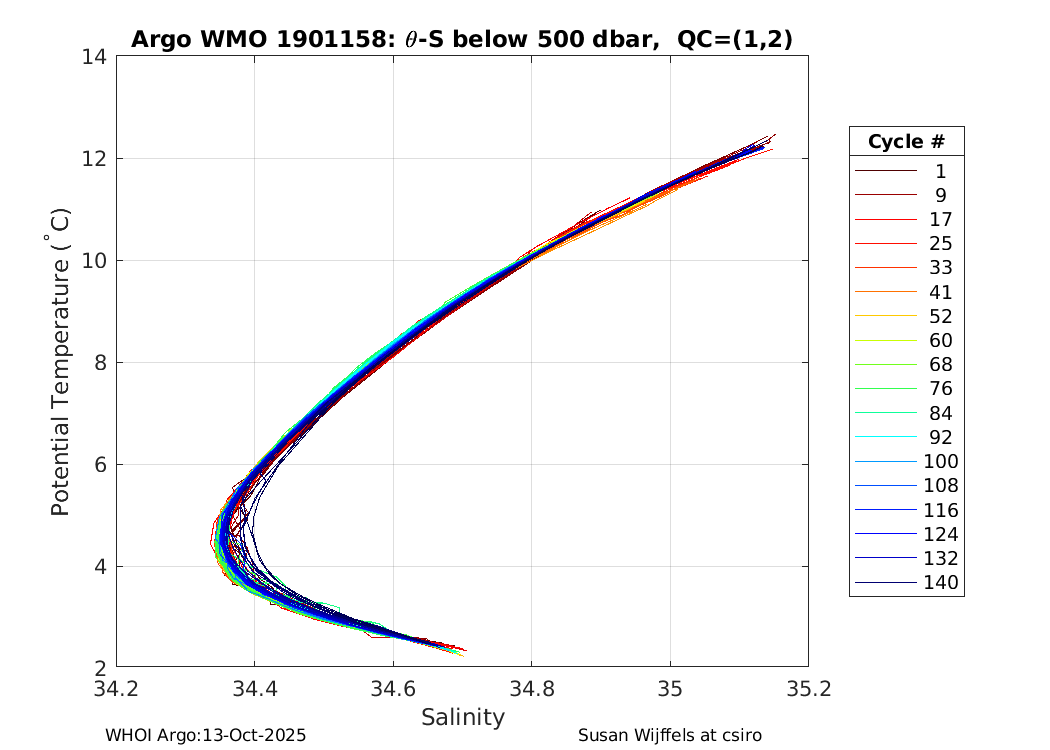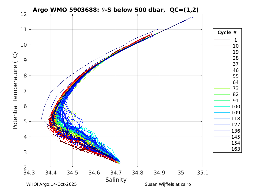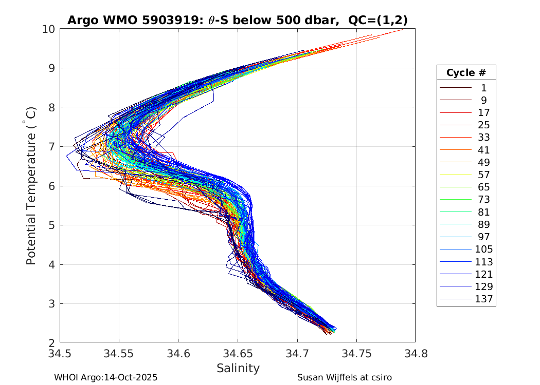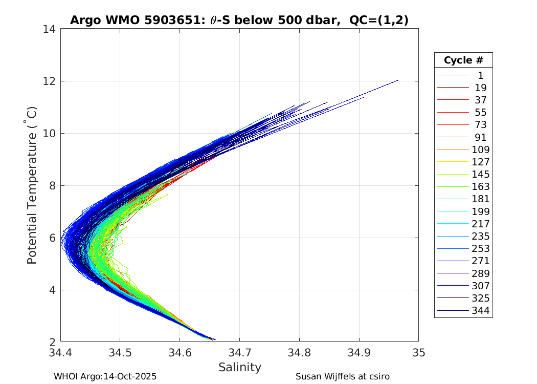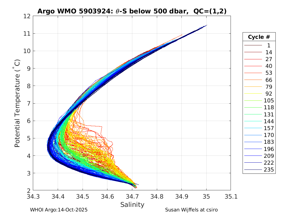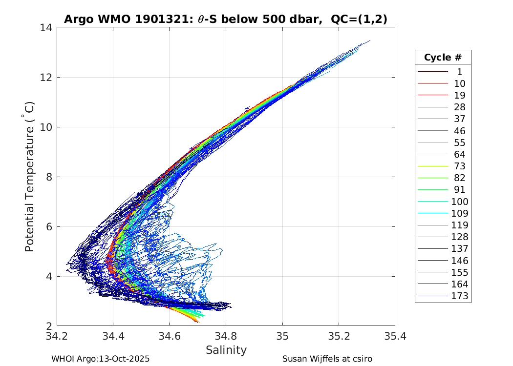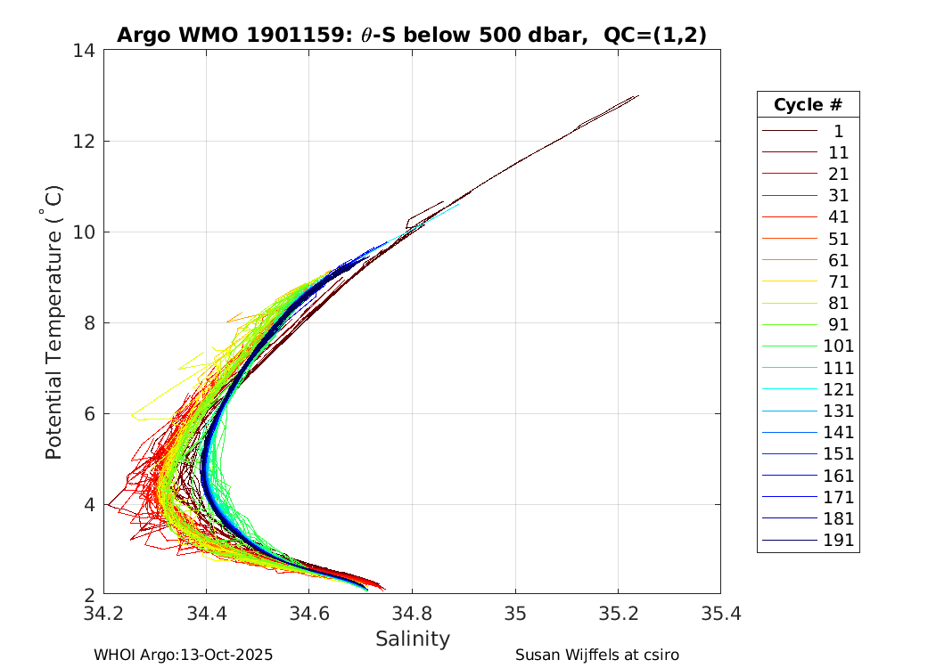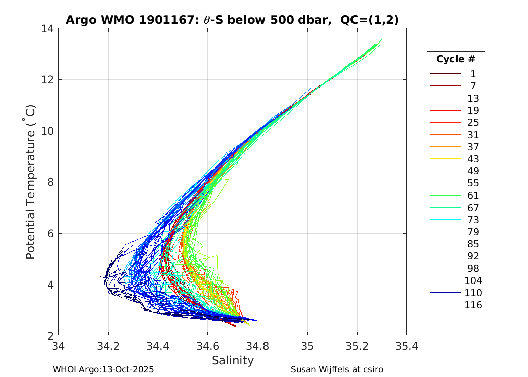 | WMO: #5903673 DAC: csiro PI: Susan Wijffels APEX: #5356 SBE41_V3: #5137 KISTLER: #2075141 Altimeter Comparison (IFREMER) EuroArgo Link | ![]() |