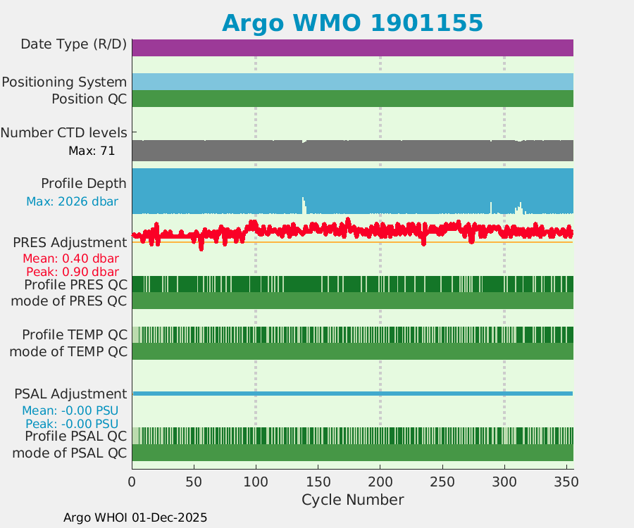 | WMO: #1901155 DAC: csiro PI: Susan Wijffels APEX: #4588 SBE41_V3: #4502 DRUCK: #2729396 AANDERAA_OPTODE_3830: #1222 Altimeter Comparison (IFREMER) EuroArgo Link | ![]() |