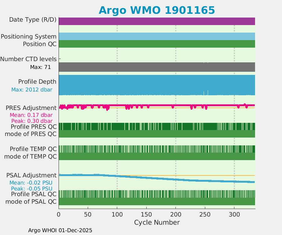 | WMO: #1901159 DAC: csiro PI: Susan Wijffels APEX: #4583 SBE41_V3: #4489 DRUCK: #2723968 AANDERAA_OPTODE_3830: #1225 Altimeter Comparison (IFREMER) EuroArgo Link | ![]() |