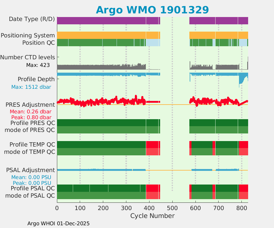 | WMO: #1901160 DAC: csiro PI: Susan Wijffels APEX: #5094 SBE41CP_V2: #3181 DRUCK: #3059509 Altimeter Comparison (IFREMER) EuroArgo Link | ![]() |