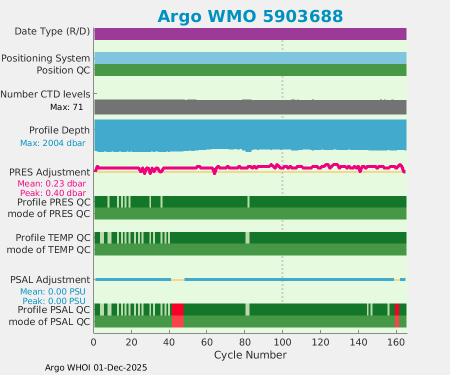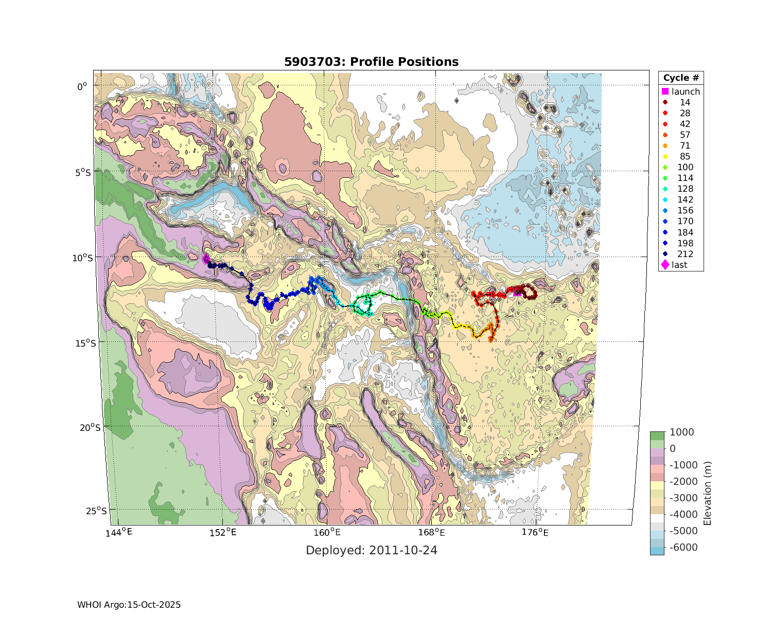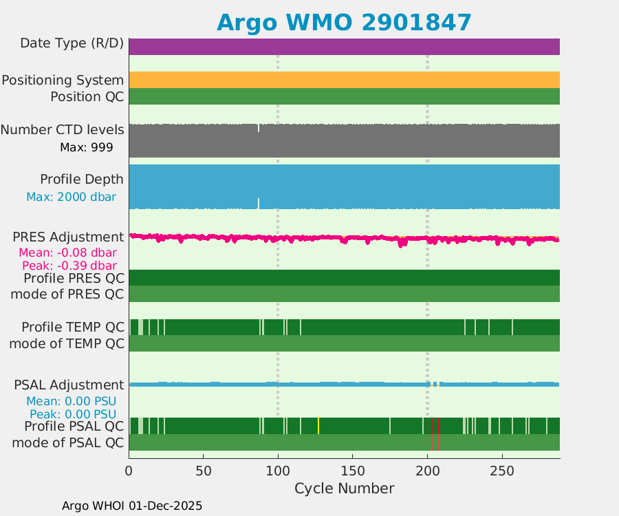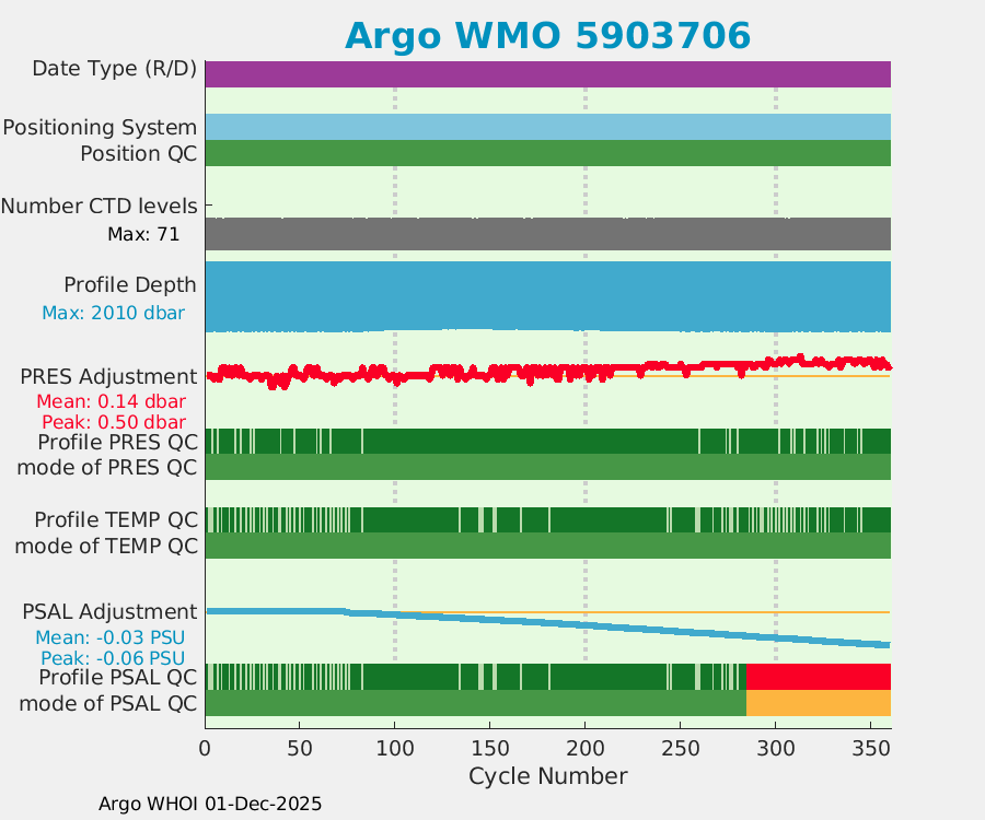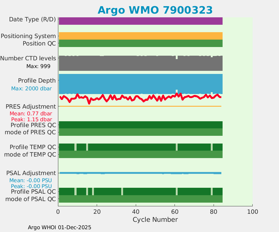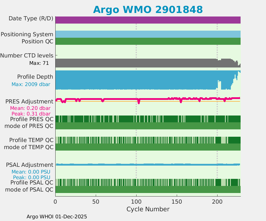 | WMO: #5903671 DAC: csiro PI: Susan Wijffels APEX: #5046 SBE41CP_V2: #3177 DRUCK: #3058470 Altimeter Comparison (IFREMER) EuroArgo Link | ![]() |